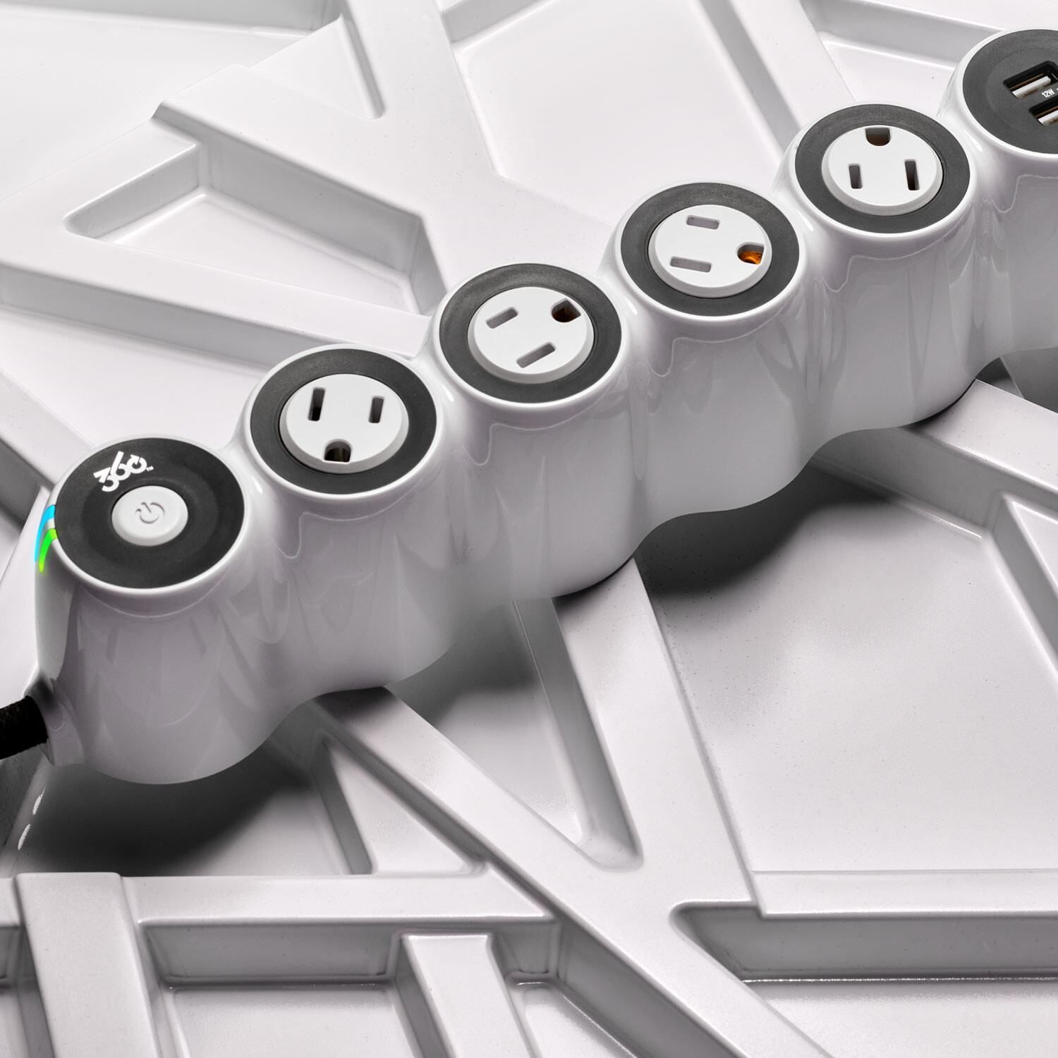 — 4 patented, 360˚ rotating outlets fit large plugs and organize cords for optimal setup