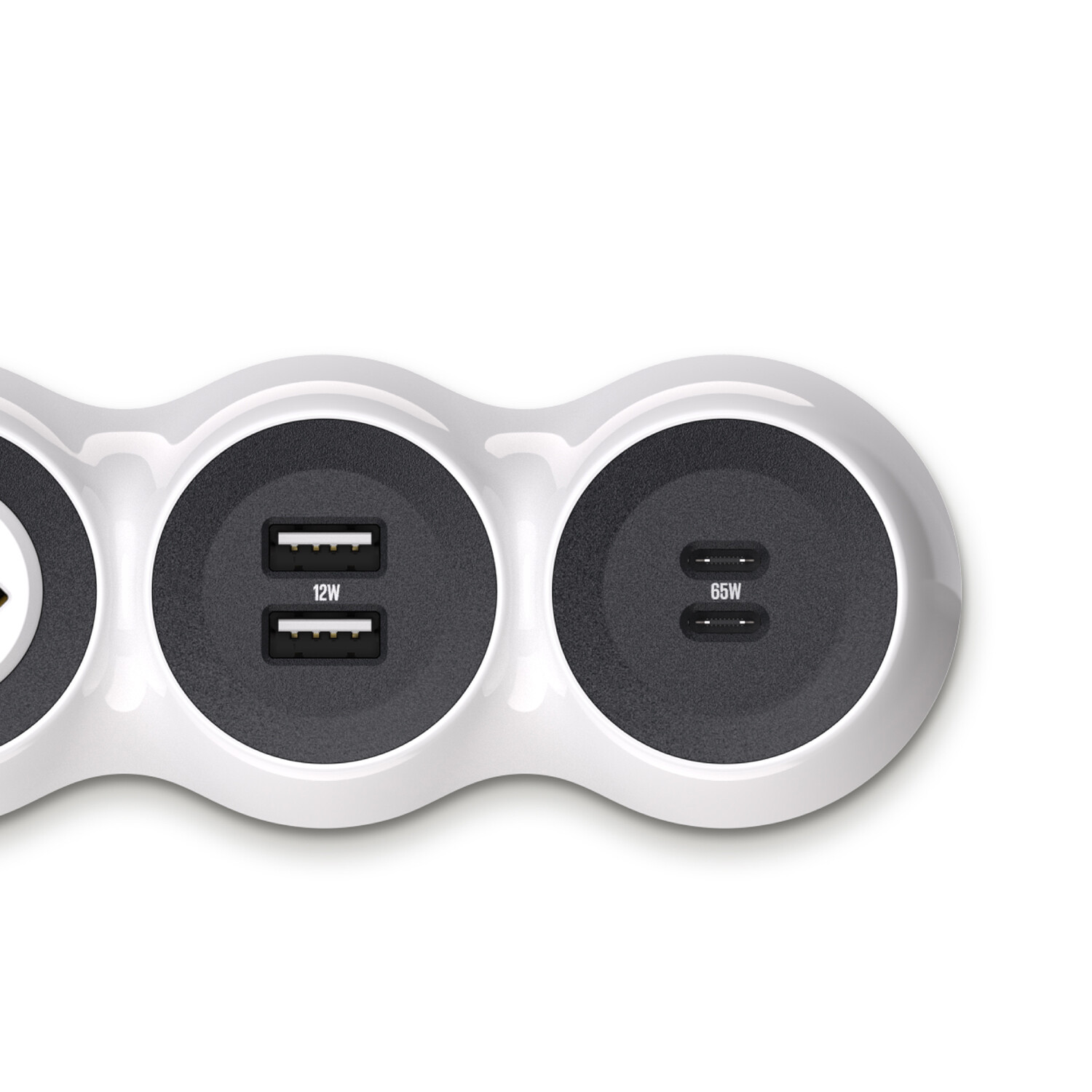 The PowerCurve77 // 77W // 6ft // 4-Outlet Rotating + 2 USB-A + 2 USB-C delivers high-performance charging and smart organization in one streamlined hub. With GaN technology for cooler, more efficient charging, rotating outlets for flexible setups, and advanced surge protection, it’s the all-in-one power solution for laptops, tablets, phones, and more—built for both productivity and protection.