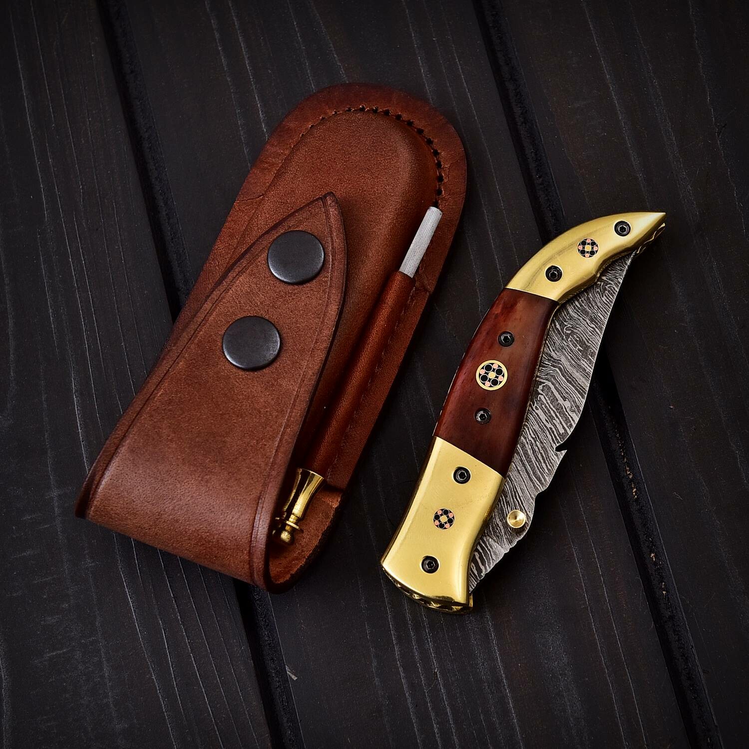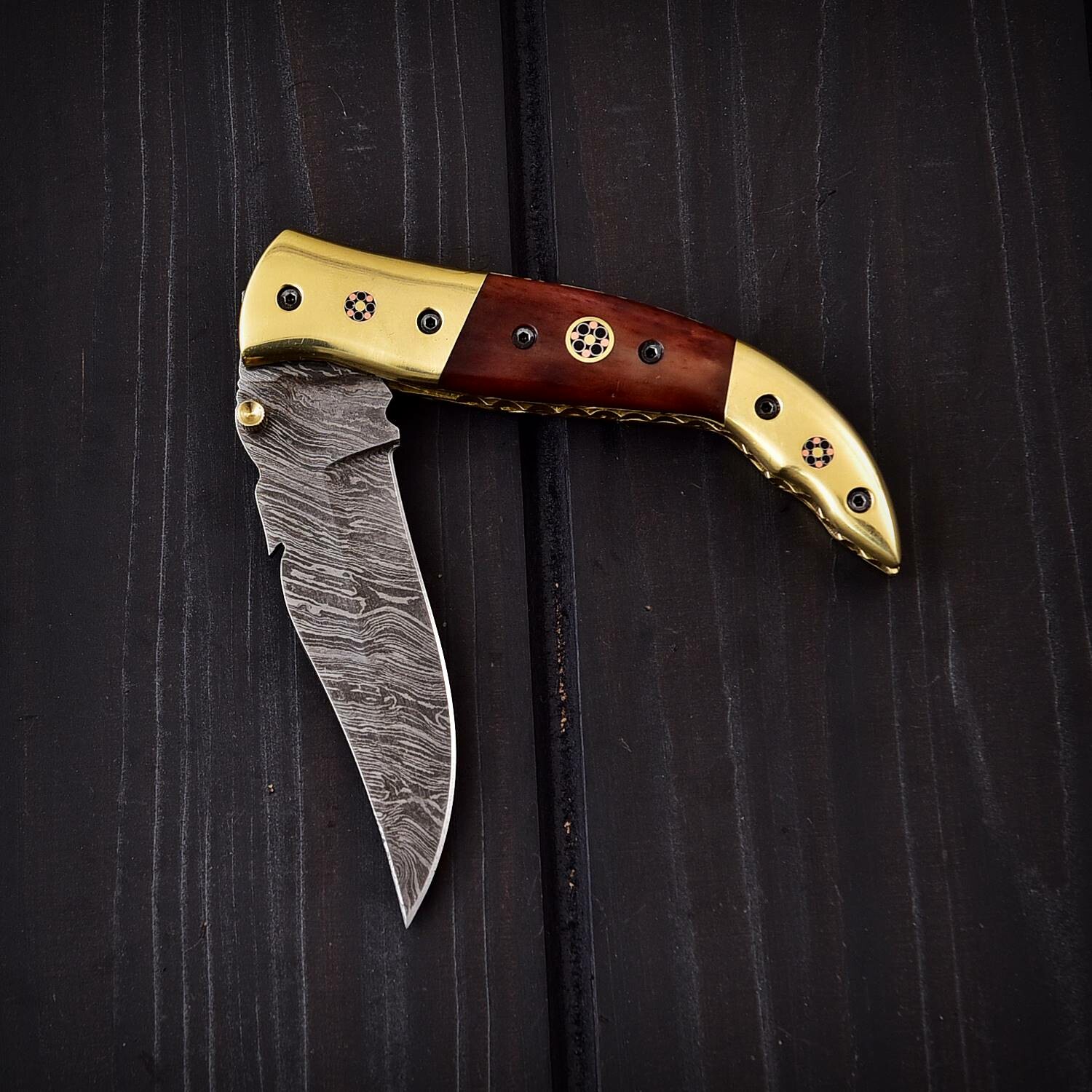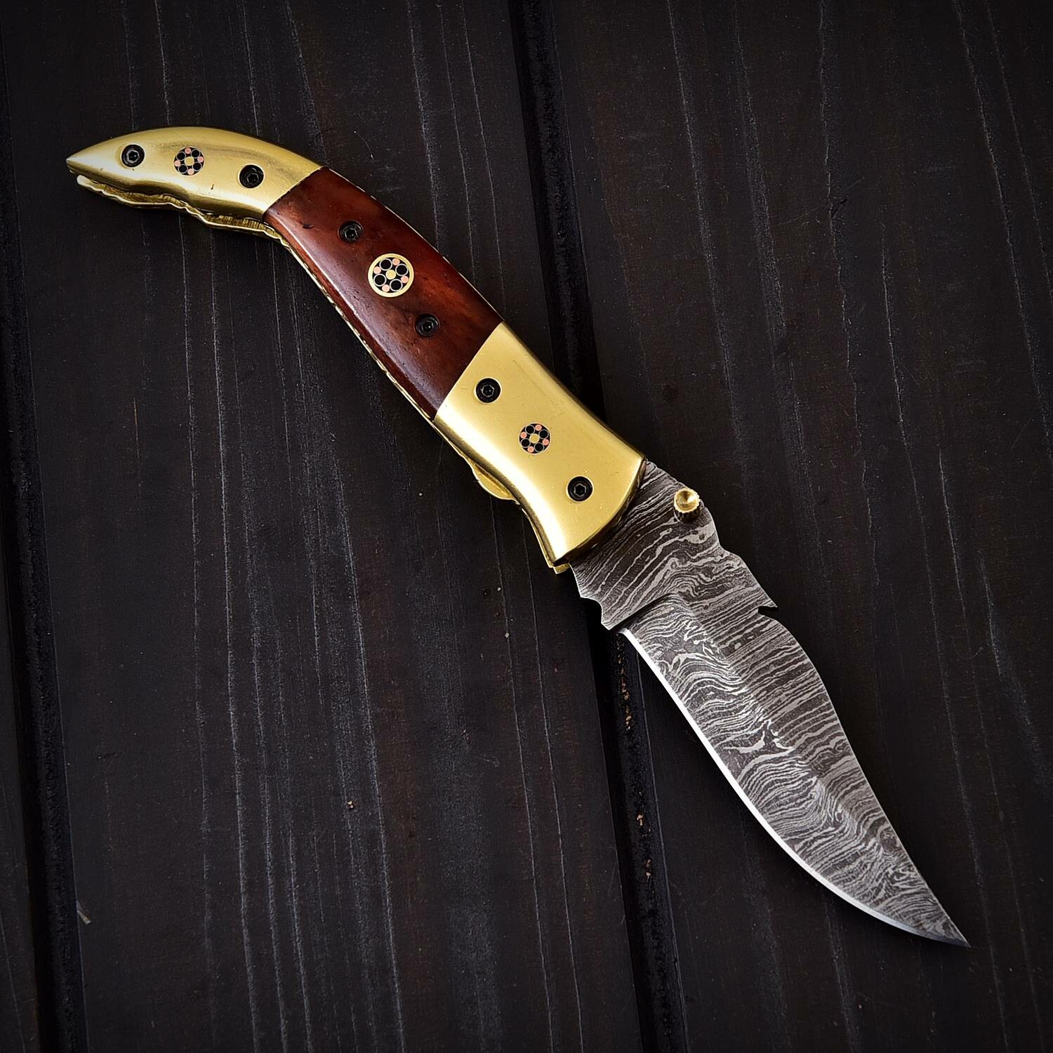 — Handmade Damascus Steel Blade Liner Lock Folding Knife