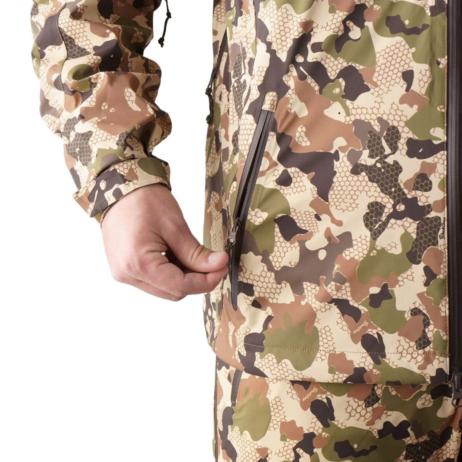 Why We Like The Duck Camp 3L Ultralight Rain Jacket, We don't let the weather stop us from getting out on an adventure. The Duck Camp 3L Ultralight Rain Jacket is our go-to protective piece of rain gear to keep us covered when it starts to pour. Made with a 3-layer fabric, this jacket is waterproof and breathable, so we can stay dry and comfortable all day. Underarm zippered vents lined with mesh allow us to let off excess heat when we are getting too hot, and a bottom hem drawcord adjustment allows us to cinch up the hem to keep the cold drafts out. An adjustable hood with a bonded brim helps keep us covered from the rain, while the adjustable cuffs ensure no rain gets to our layer underneath. Two zippered hand pockets, a zippered chest pocket, and an internal zippered pocket store all our essentials when we are out on the trail. Rating: 10,000mm; Breathability Rating: 25,000g; Seams: fully sealed; Fit: relaxed Length: regular; Hood: adjustable, visor; Pockets: 2 zippered hand, 1 zippered chest, 1 zippered internal; Venting: underarm; Activity: hike/camp