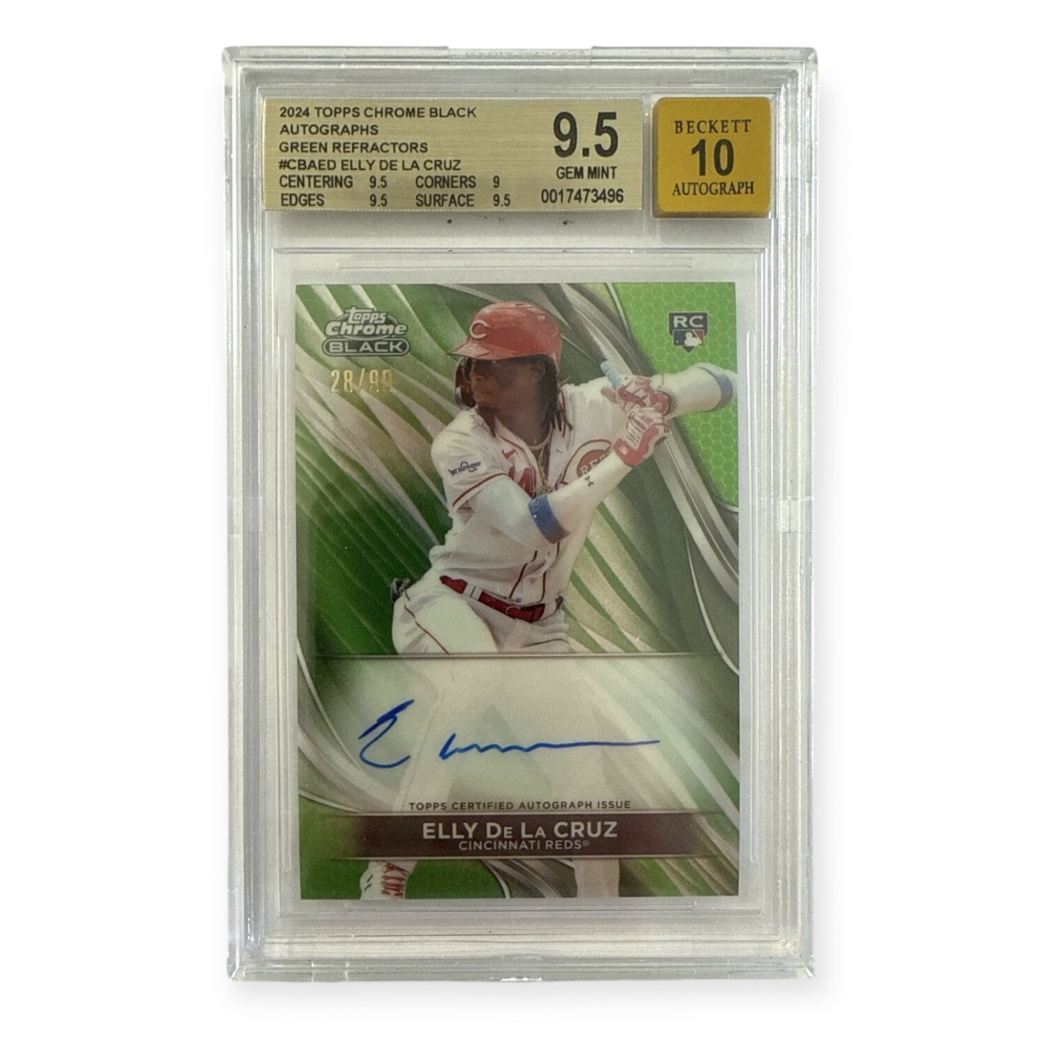 — Elly De La Cruz 2024 Topps Chrome Black Green Refractor Autographed Card