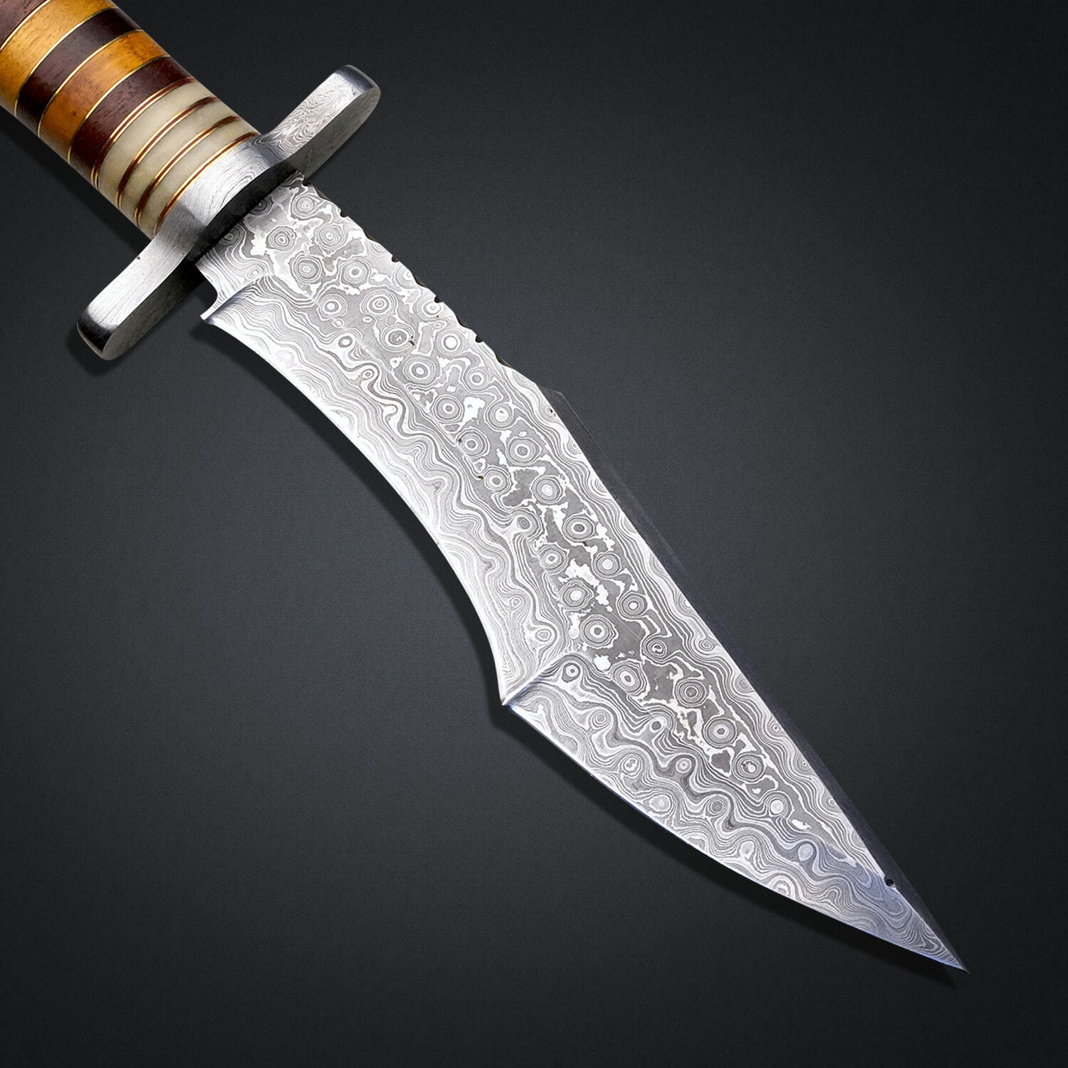 — Handle Material: Camel Bone, Exotic Wood, Damascus Steel
