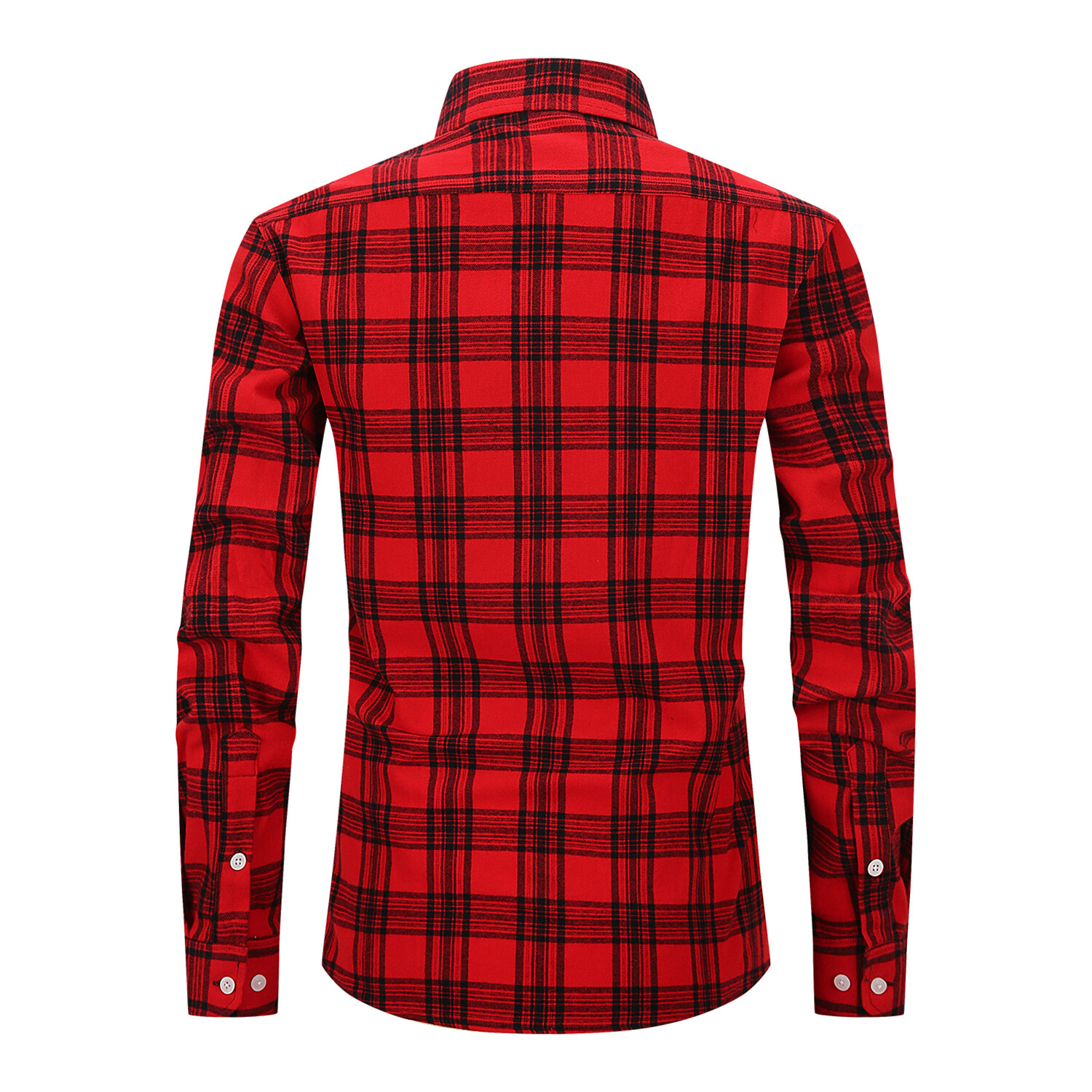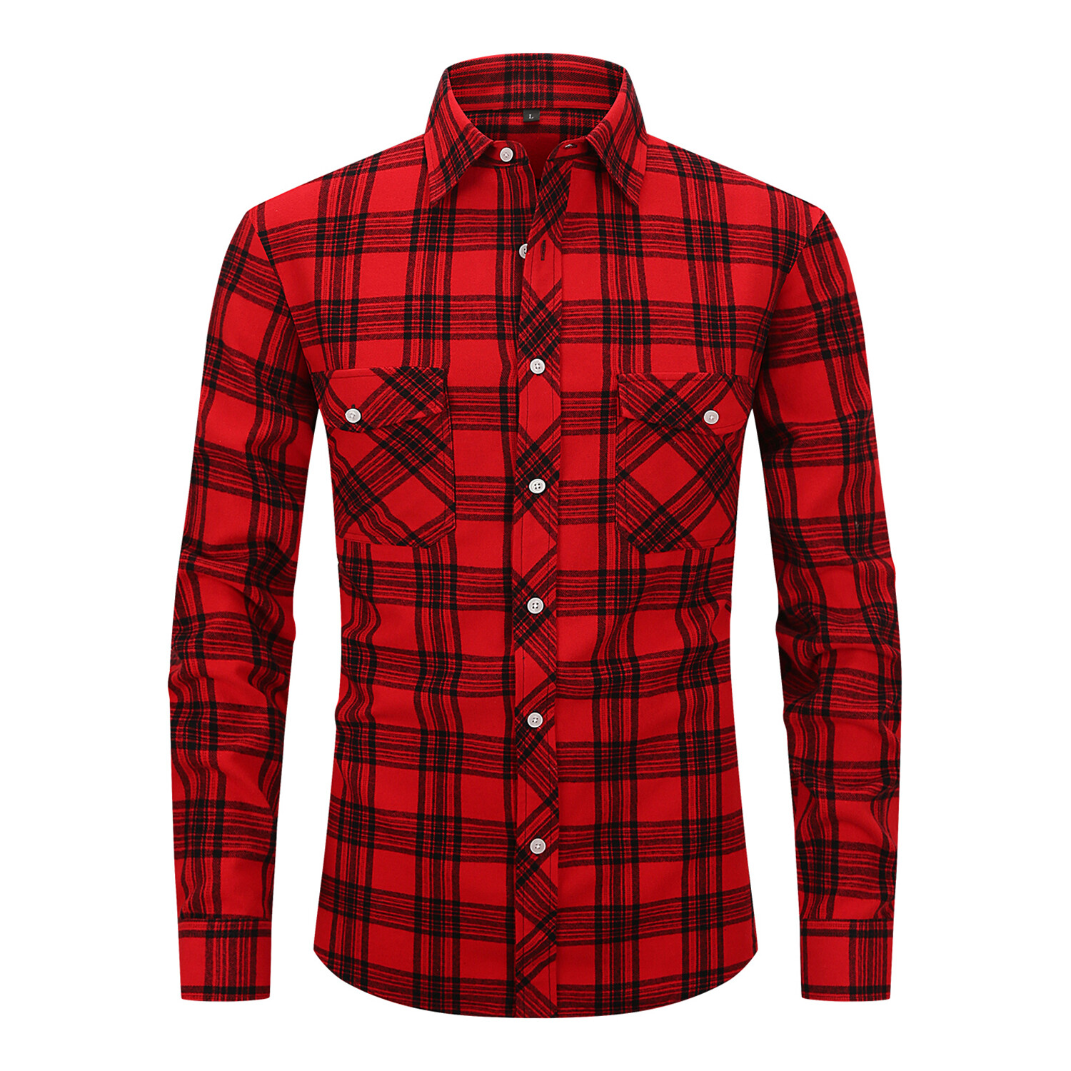 Plaid 2 Front Pocket Detail Long Sleeve Button-Up // Red + Black