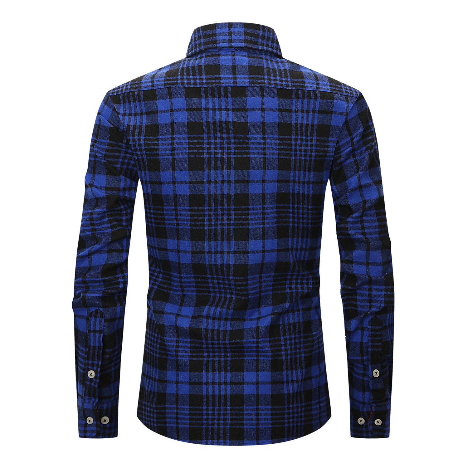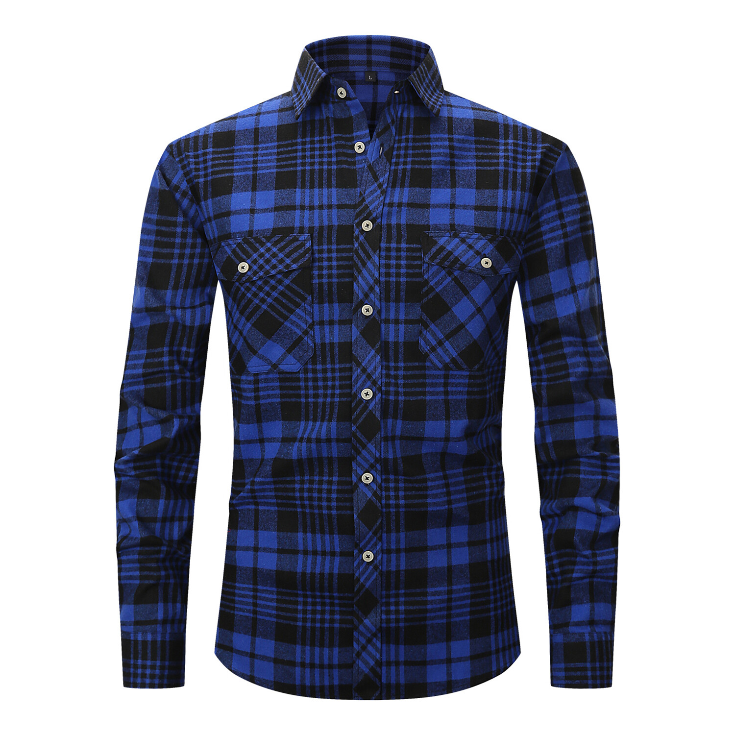 Tartan 2 Front Pocket Detail Long Sleeve Button-Up // Navy + Black