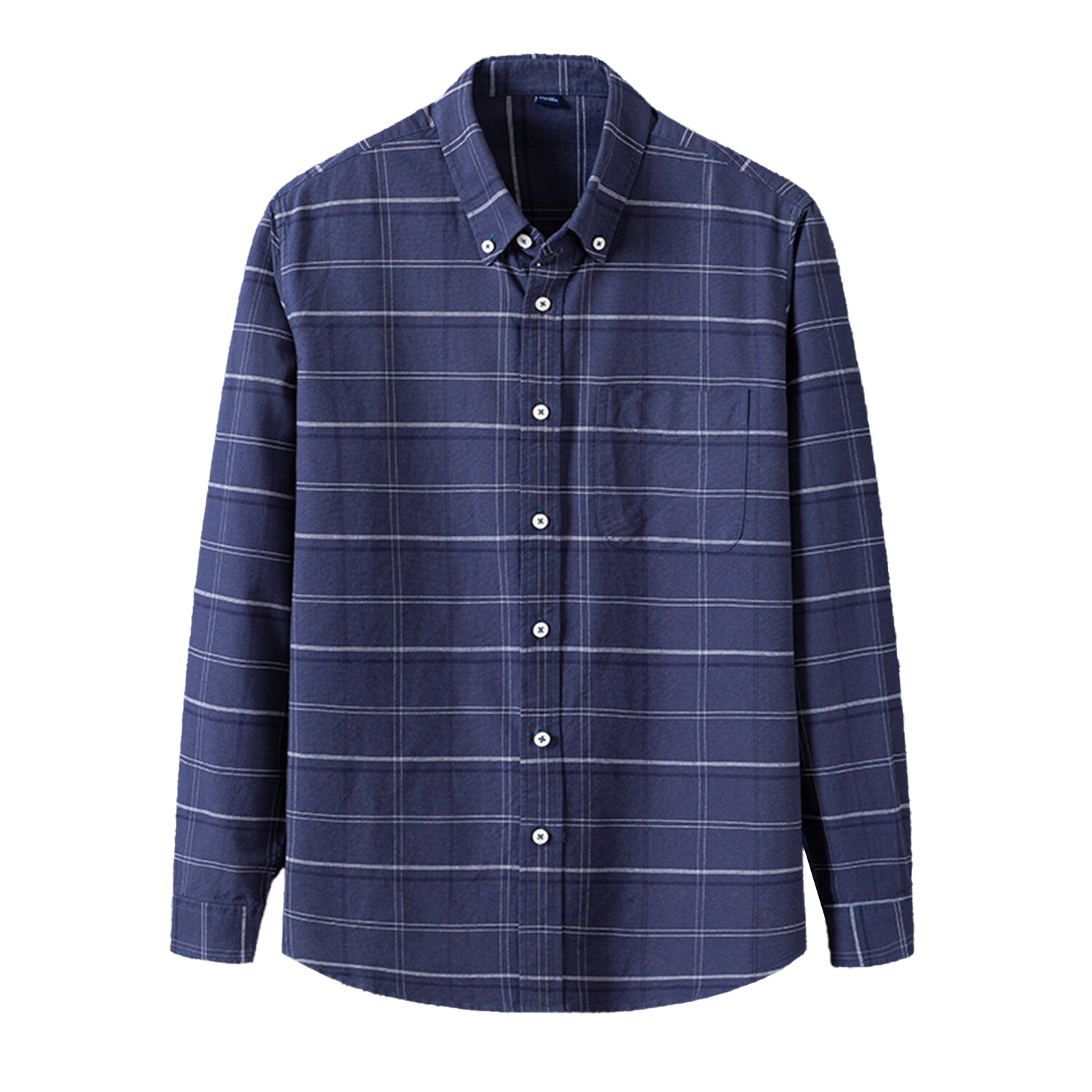 Windowpane Front Pocket Detail Long Sleeve Button-Up // Navy Blue