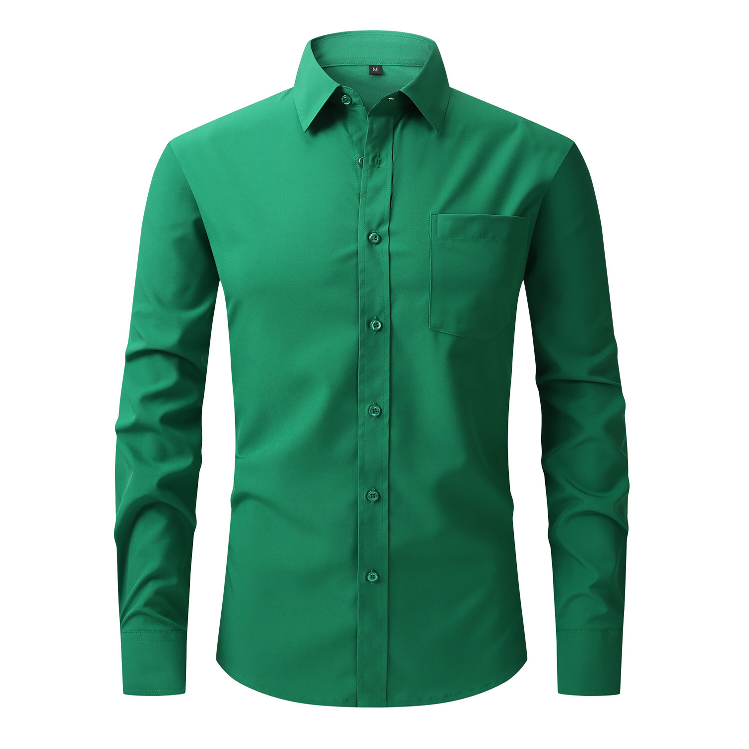 Solid Front Pocket Long Sleeve Button-Up Shirt // Green