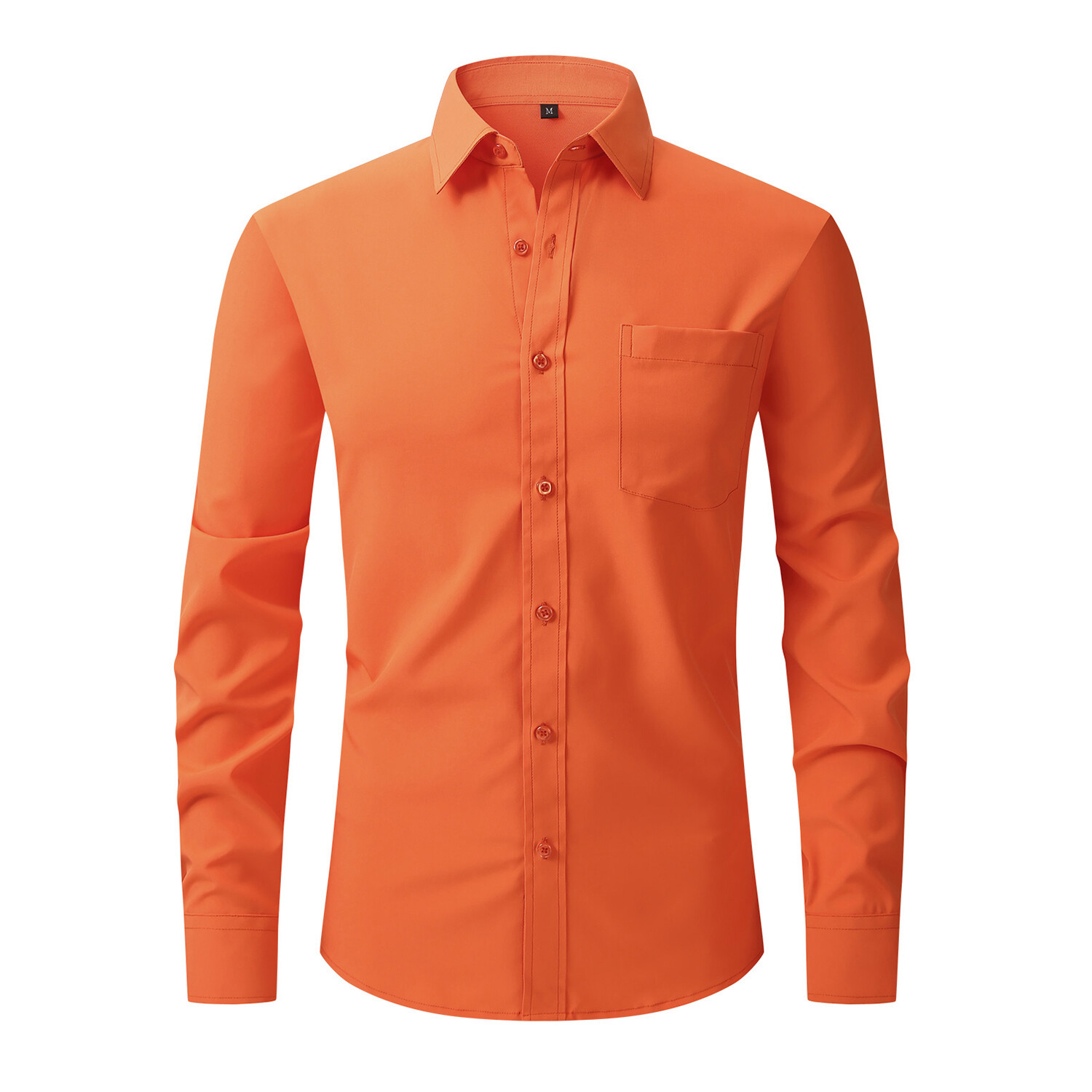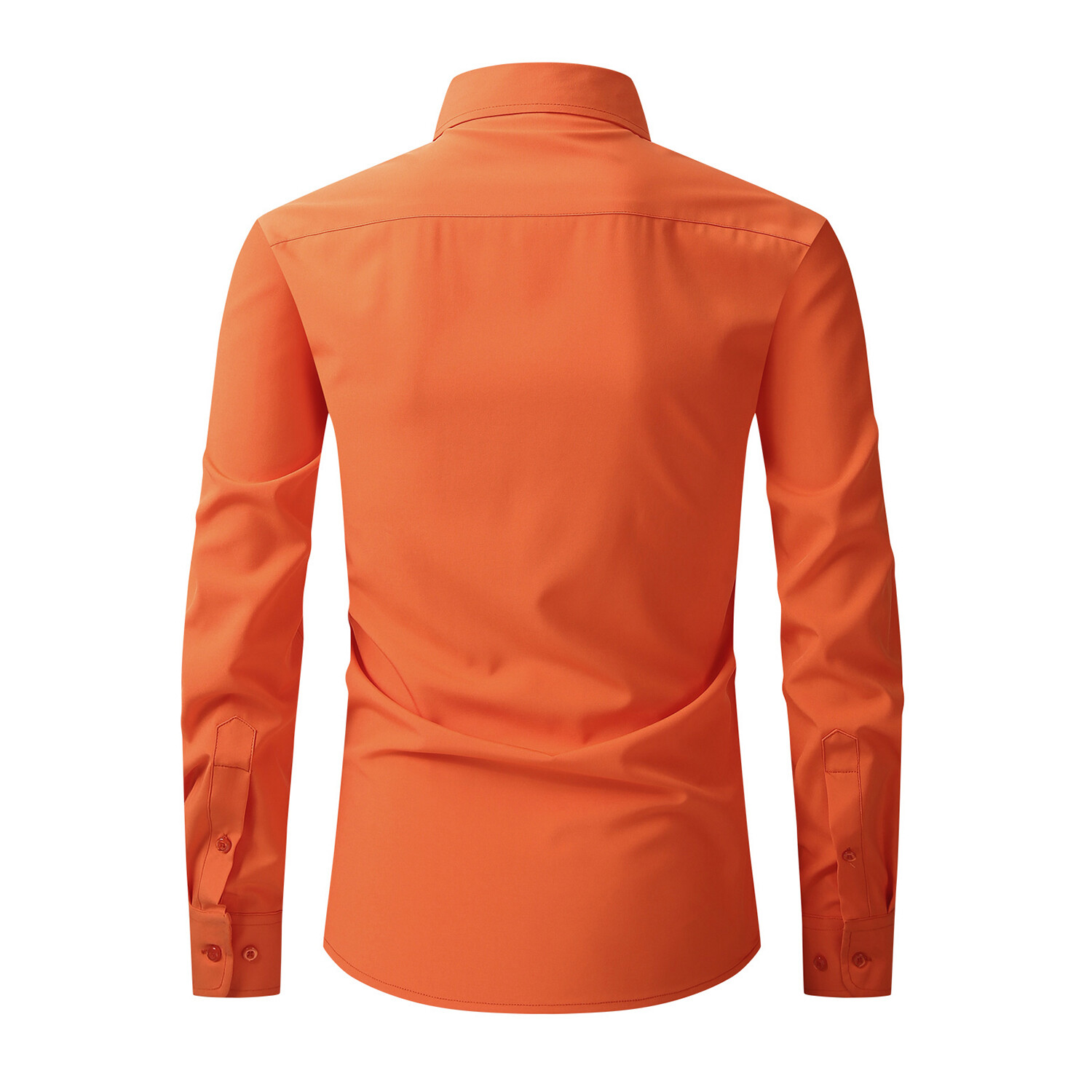 Solid Front Pocket Long Sleeve Button-Up Shirt // Orange