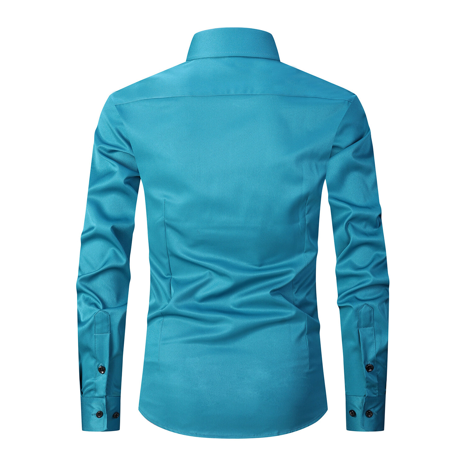 Strech Solid Long Sleeve Black Buttons Button-Up Shirt // Bright Blue