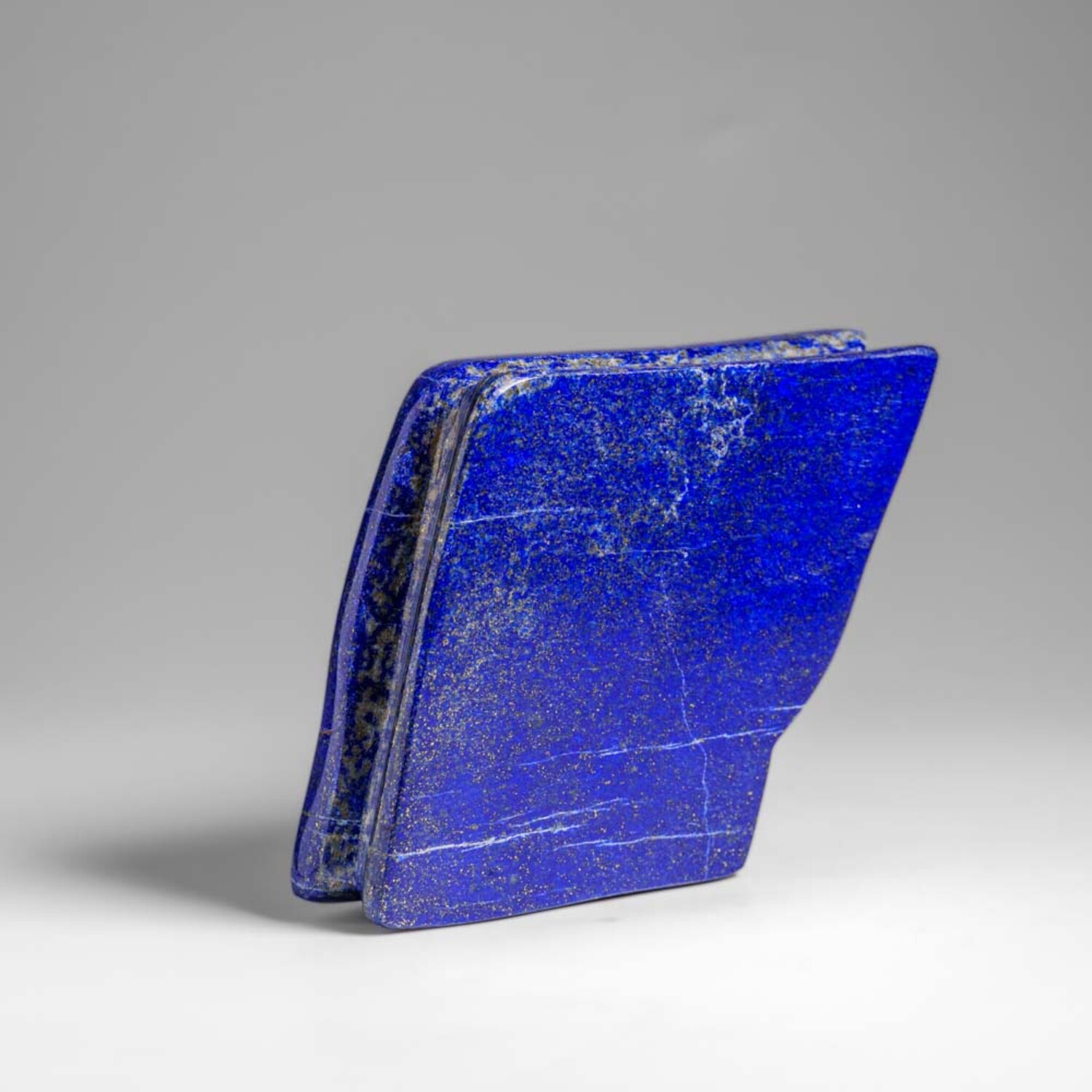 Beautiful hand-polished free form of AAA quality natural Afghani lapis lazuli. This specimen has rich, electric-royal blue color enriched with scintillating pyrite micro-crystals. Lapis Lazuli is a powerful crystal for activating the higher mind and enhancing intellectual ability. It stimulates the desire for knowledge, truth and understanding, and aids the process of learning. It is excellent for enhancing memory.