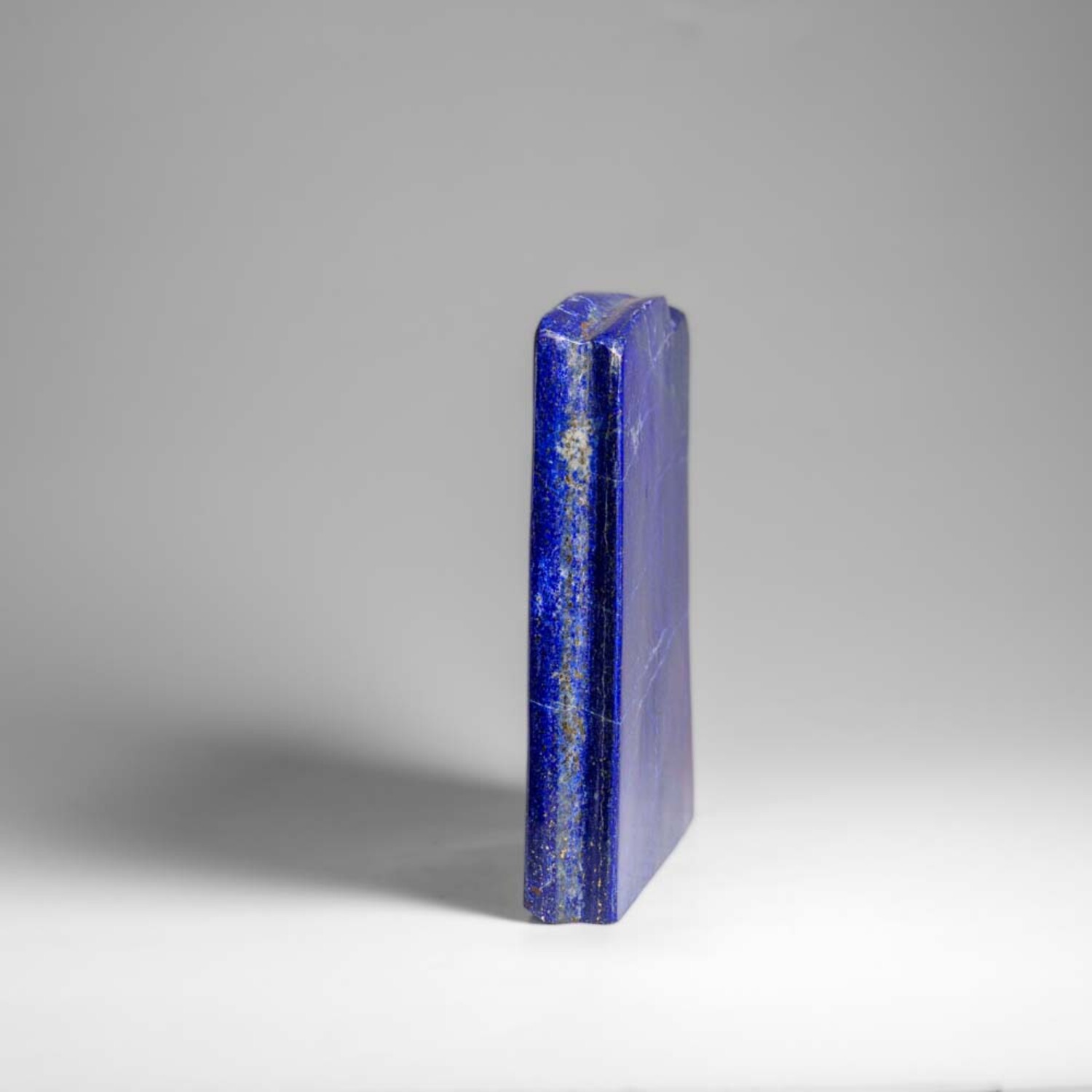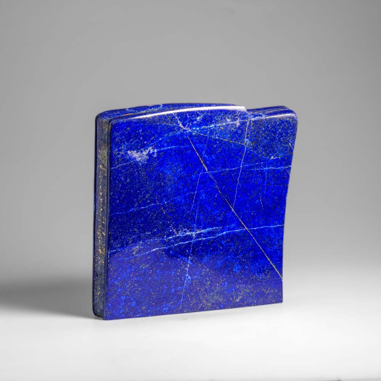 Beautiful hand-polished free form of AAA quality natural Afghani lapis lazuli. This specimen has rich, electric-royal blue color enriched with scintillating pyrite micro-crystals. Lapis Lazuli is a powerful crystal for activating the higher mind and enhancing intellectual ability. It stimulates the desire for knowledge, truth and understanding, and aids the process of learning. It is excellent for enhancing memory.