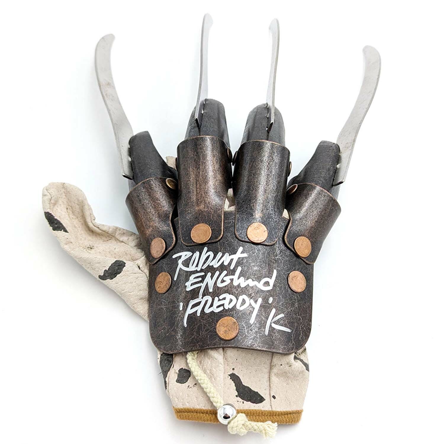 Get your very own "Freddy Krueger" glove that has been autographed by the star of the "Nightmare on Elm Street" franchise - Robert Englund. He has included a "Freddy K" inscription. Glove size is approximately 13X12.
