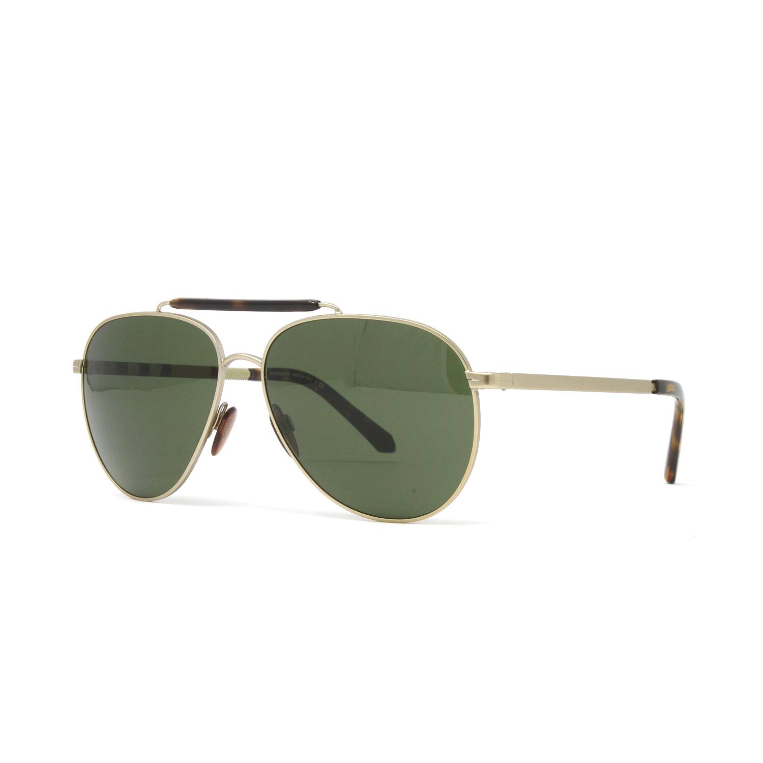 Burberry // Men's // Aviator Sunglasses // Matte Light Gold + Green