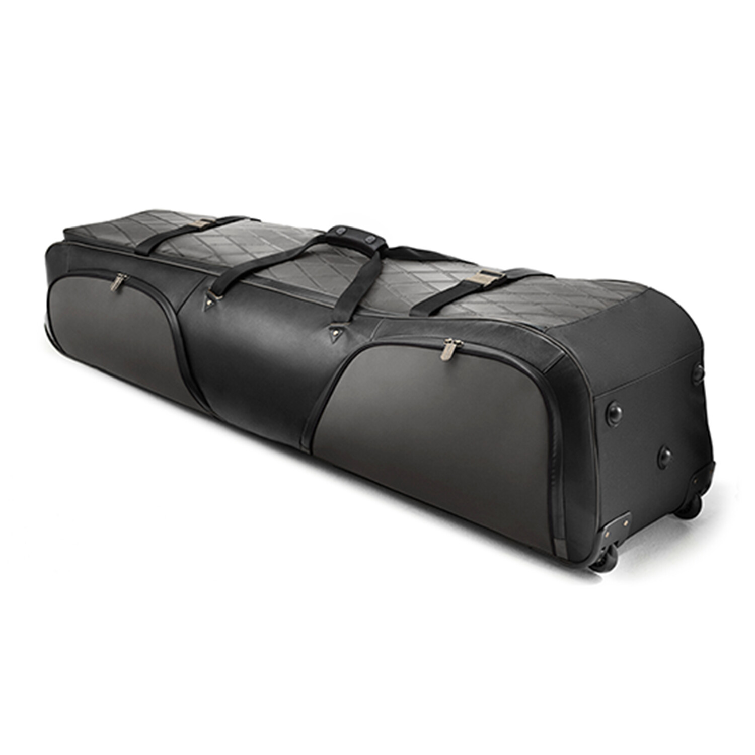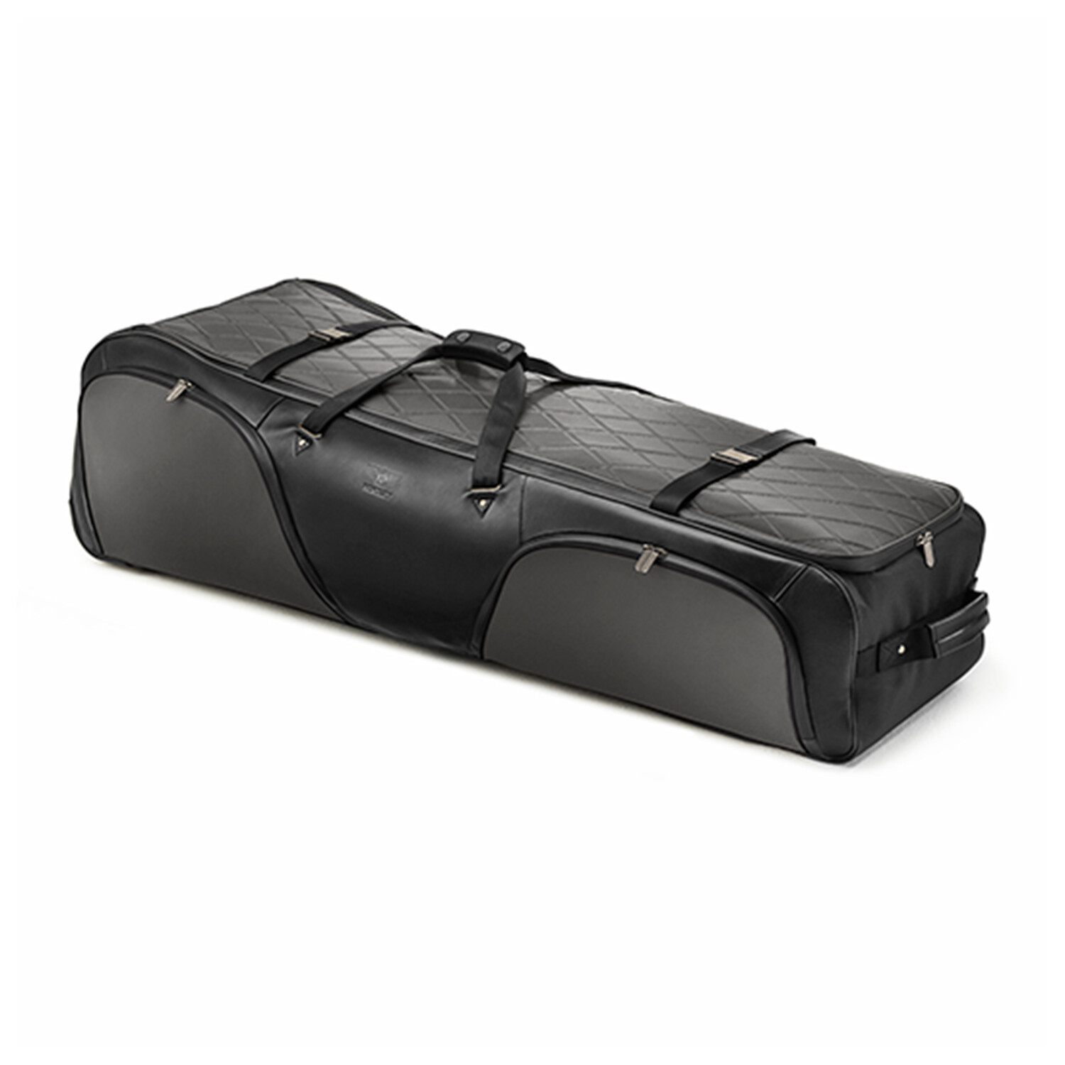 Every component of the Bentley Golf Flight Cover has been painstakingly designed for effortless travel. The spacious interior coupled with strategically placed quilted pockets and exquisite black leather detailing, your traveling needs will be met in style with the Bentley Golf Flight Cover. Complete with rolling wheels, four exterior pockets, interior and exterior straps,and a top handle for easy pulling. The flight cover has enough room for a cart or stand holds complete set in a bag with room to spare for accessories or a golf umbrella.