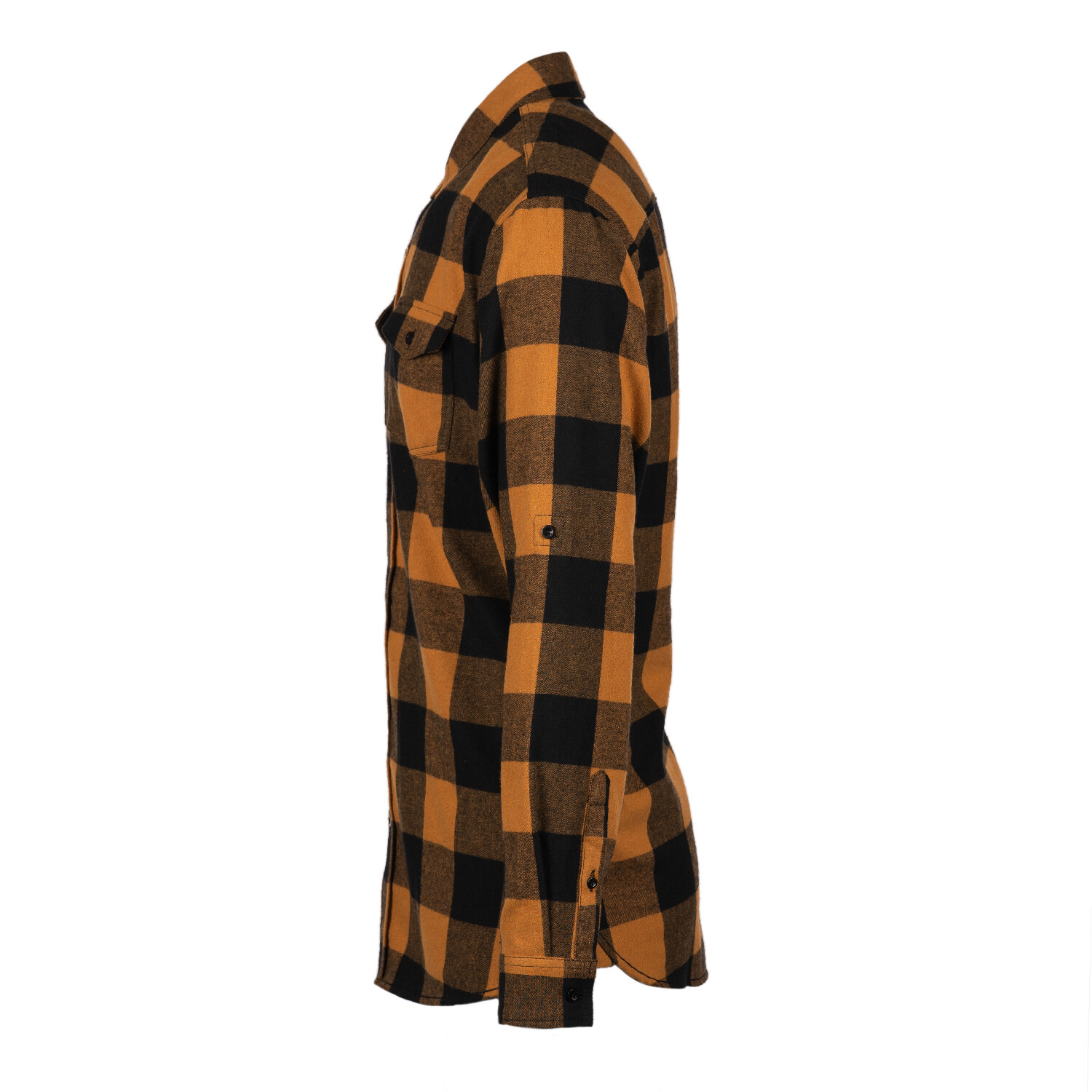 Checkered 2-Pocket Long-Sleeve Flannel Shirt // Orange + Black