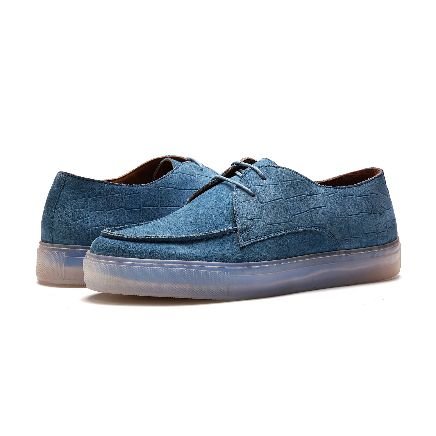 Echo Embossed Suede Derby Sneaker // Niagara Blue