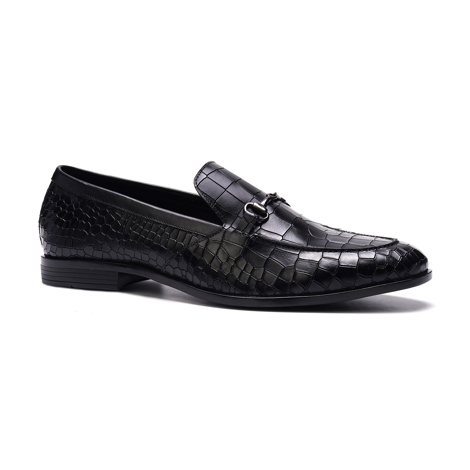 Louis Embosseed Croc Patent Leather Bit Loafer // Black