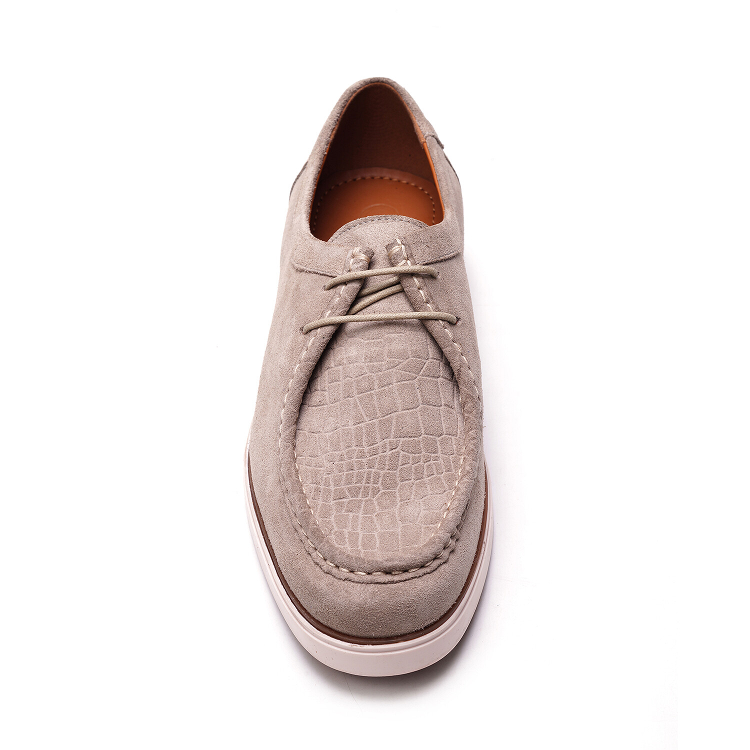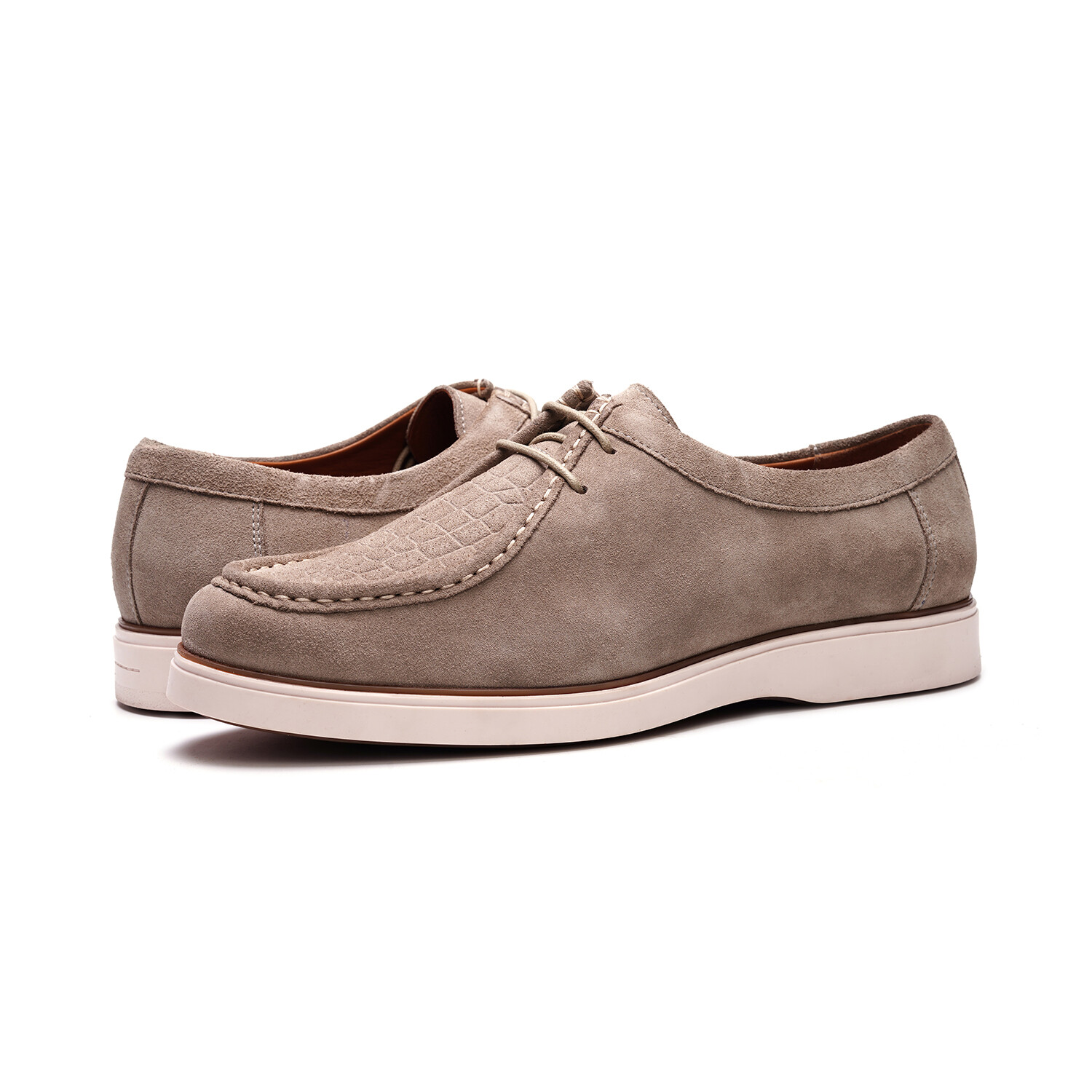 The MORRISON Moc Shoe blends refined texture with relaxed styling, featuring a supple calfskin suede upper paired with crocodile-embossed detailing. Enhanced by a leather lining and foam-cushioned leather-lined insole, it provides superior comfort and distinctive sophistication.