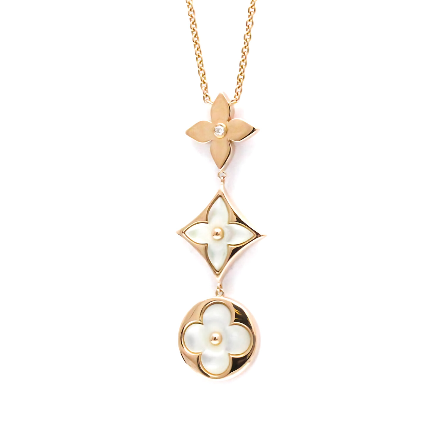 Louis Vuitton // 18k Rose Gold Color Blossom Multi-Motif Diamond + Mother of Pearl Pendant Necklace // 15.35"-17.71" // Store Display