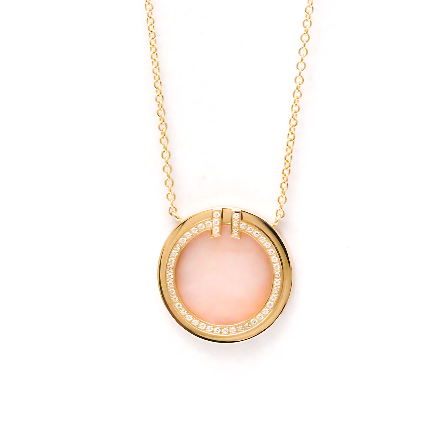 Tiffany & Co. // 18k Rose Gold T Two-Circle Diamond + Opal Pendant Necklace // 15.74"-17.71" // Store Display