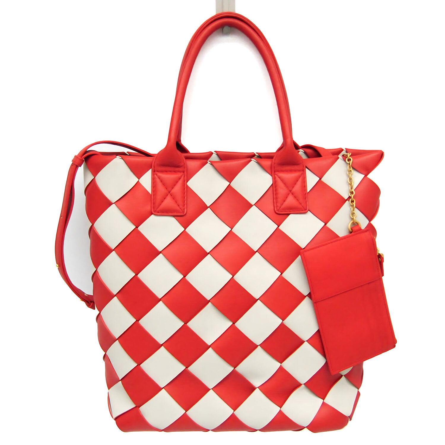 Bottega Veneta // Maxi Intrecciato Leather Tote Shoulder Bag // Off-White + Orange-Red // Pre-Owned