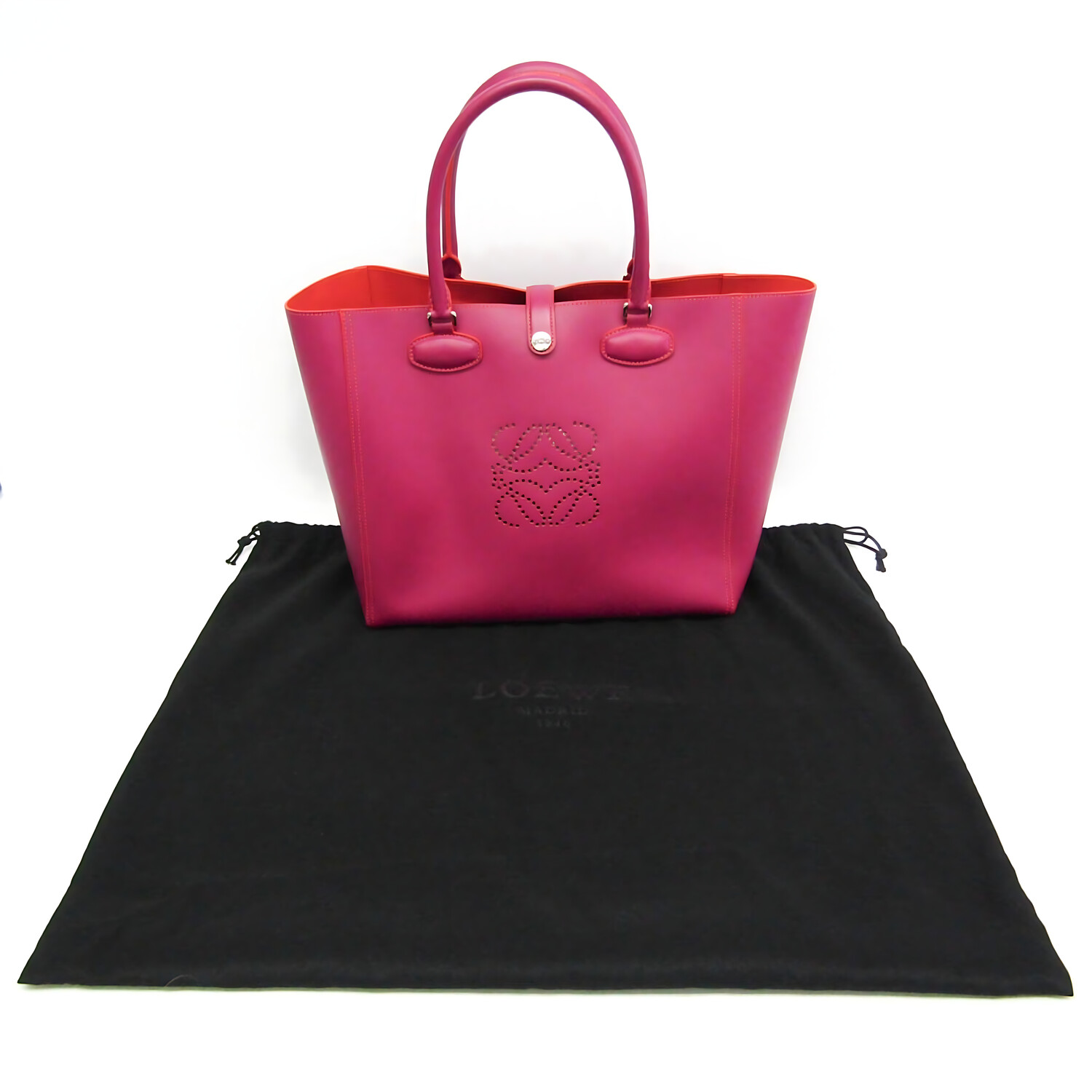 Loewe // Leo Anagram Leather Tote Bag // Fucshia + Orange // Pre-Owned
