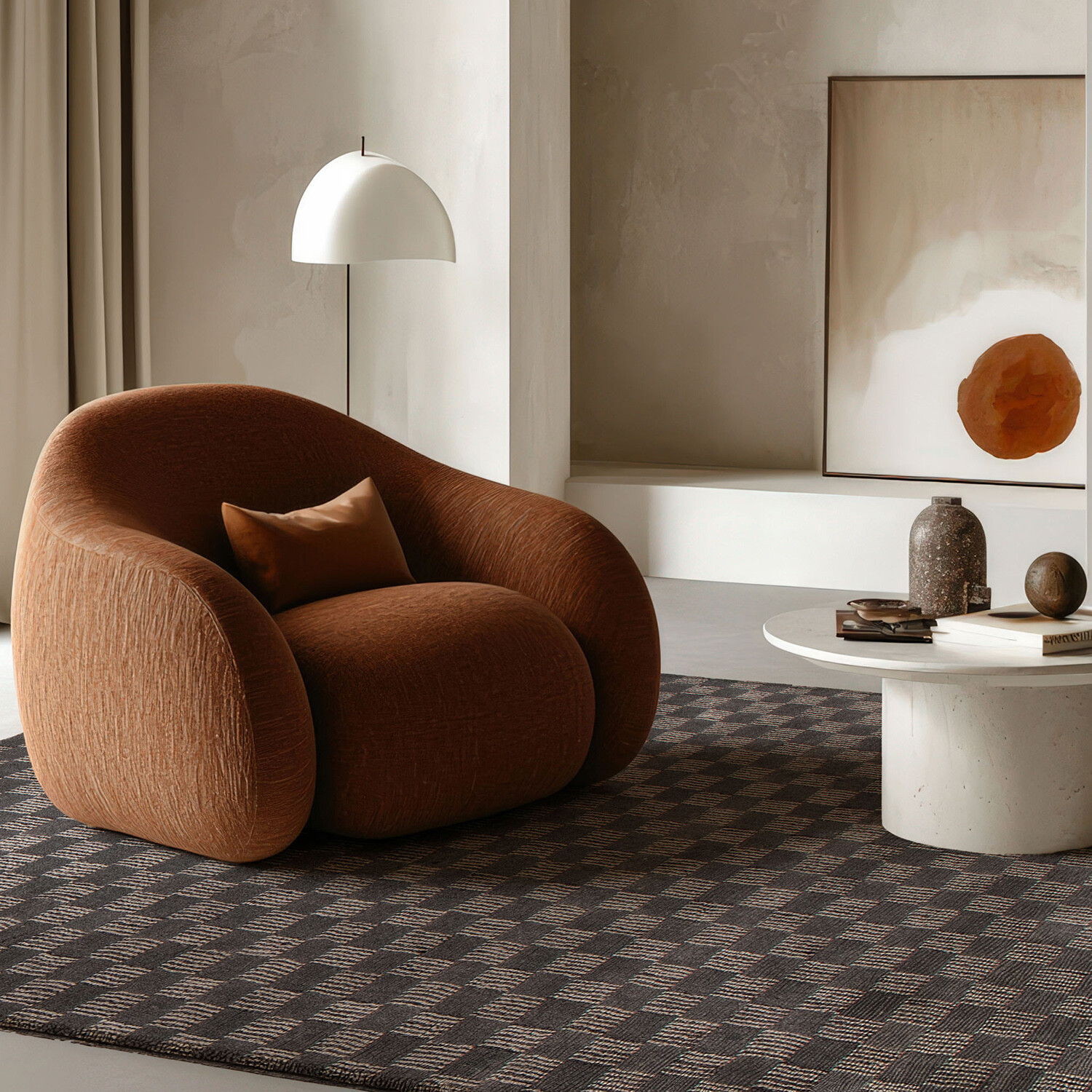 Artfully crafted. Effortlessly refined. Handmade in India, this rug is a celebration of design heritage—merging the clean, architectural lines of Bauhaus with the inviting warmth of midcentury modern style. Its hand-tufted wool construction delivers a rich, dimensional texture and a luxuriously soft yet durable feel underfoot, making it an ideal addition to high-traffic areas like living rooms, dining spaces, bedrooms, guest rooms, or home offices. In a versatile earthy hue, this area rug offers more than just comfort—it creates a quiet foundation that anchors your space with subtle sophistication. A timeless essential for modern living.