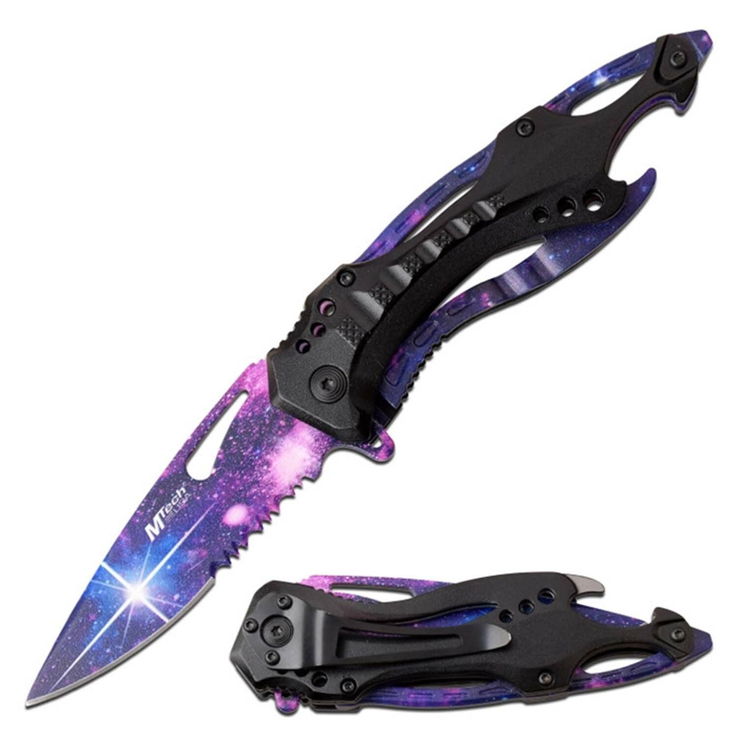 This collection of spring assisted pocket knives is built for fast, reliable one handed use with bold, graphic designs that stand out. Each piece features a tension driven opening mechanism for quick deployment, textured grips for control, and durable stainless steel blades suited for everyday tasks. From tactical profiles to statement finishes, these knives deliver dependable function and solid build quality at an easy entry price.