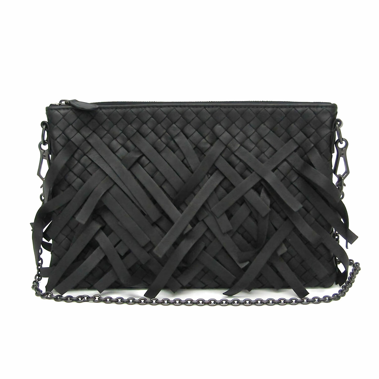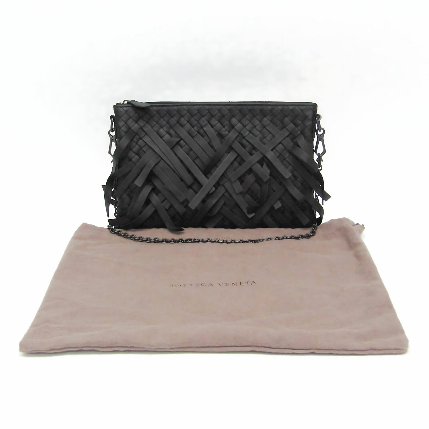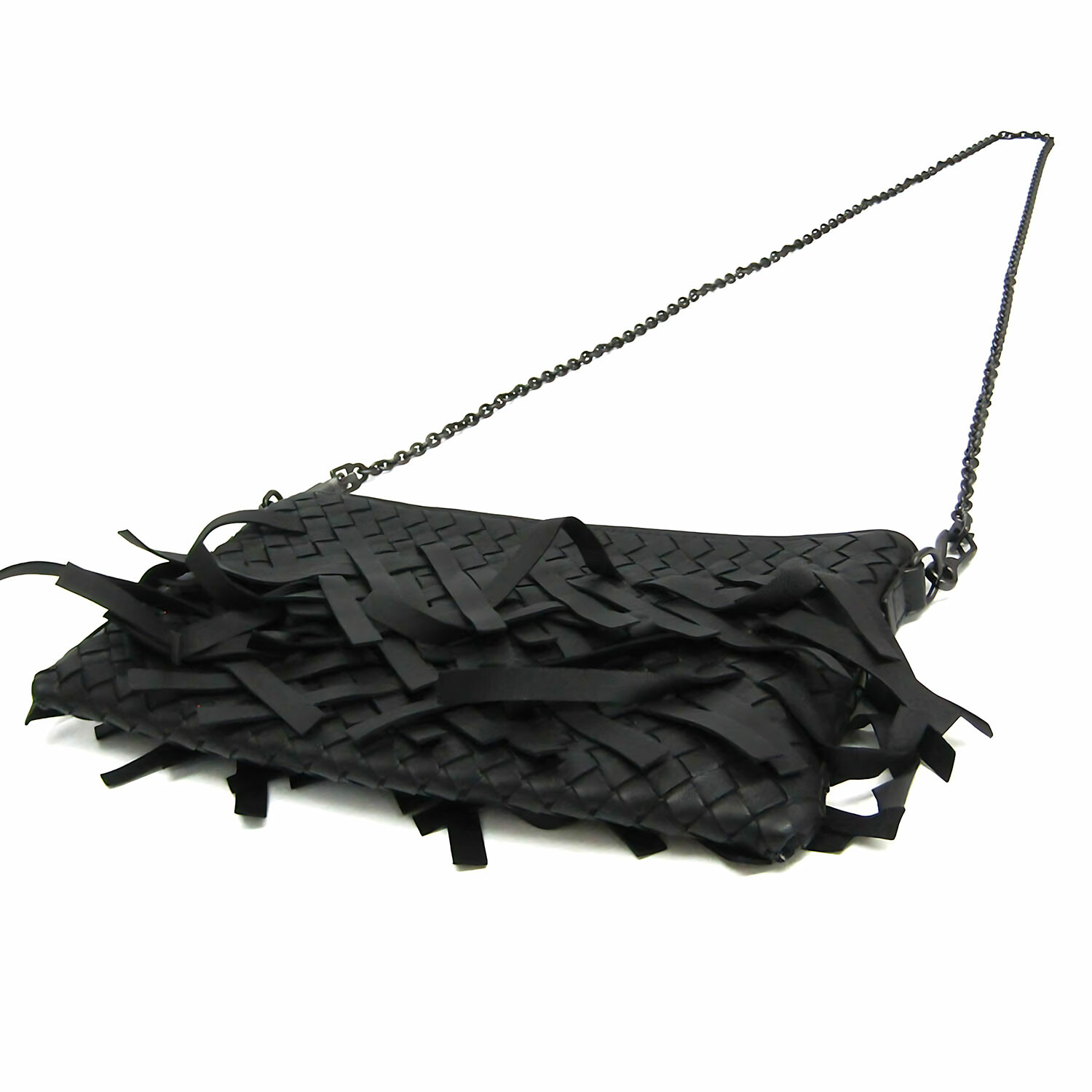 Bottega Veneta // Intrecciato Leather Fringed Chain Shoulder Bag // Black // Pre-Owned