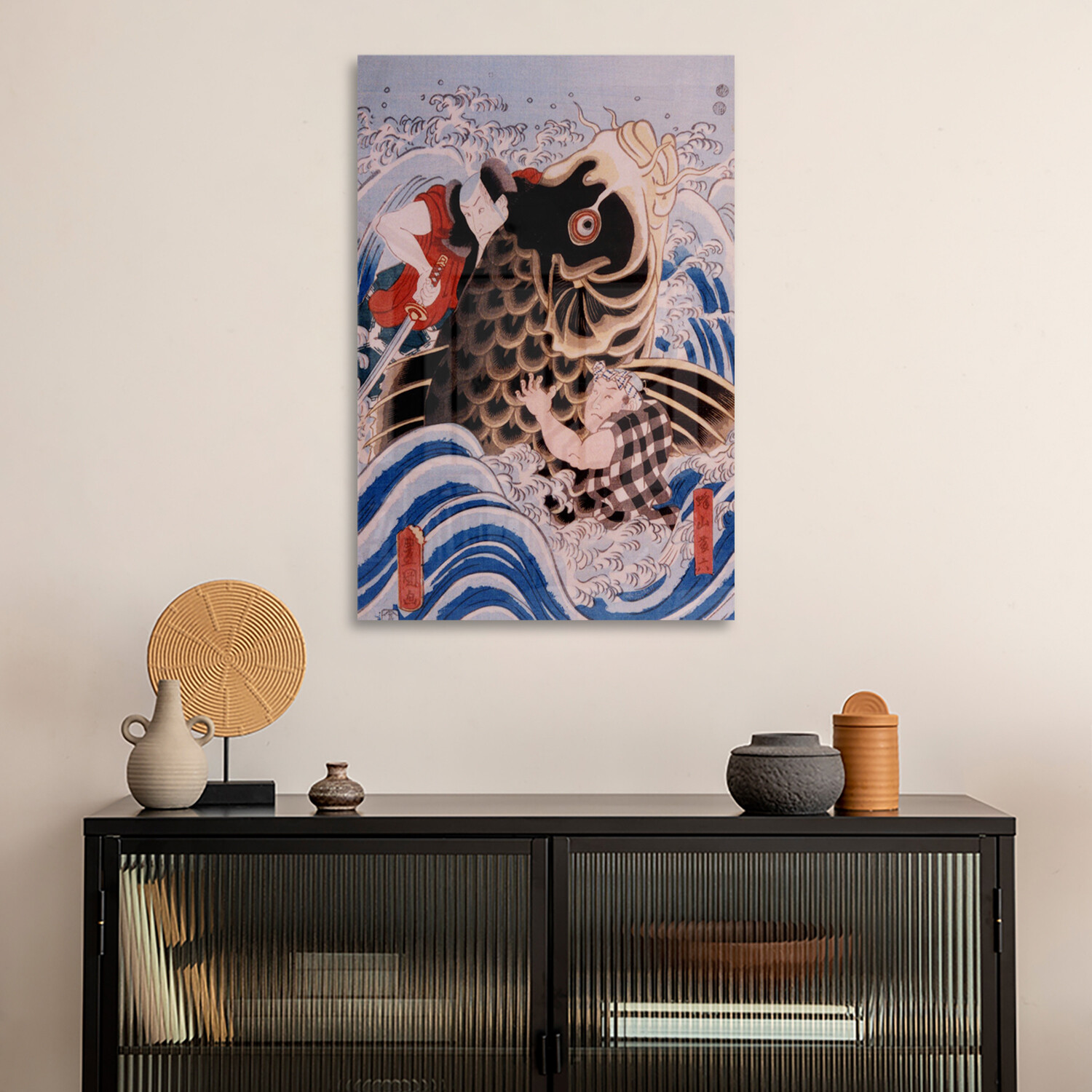 Samurai Wrestling Giant Koi Carp Print on Acrylic Glass by Unknown Artist
