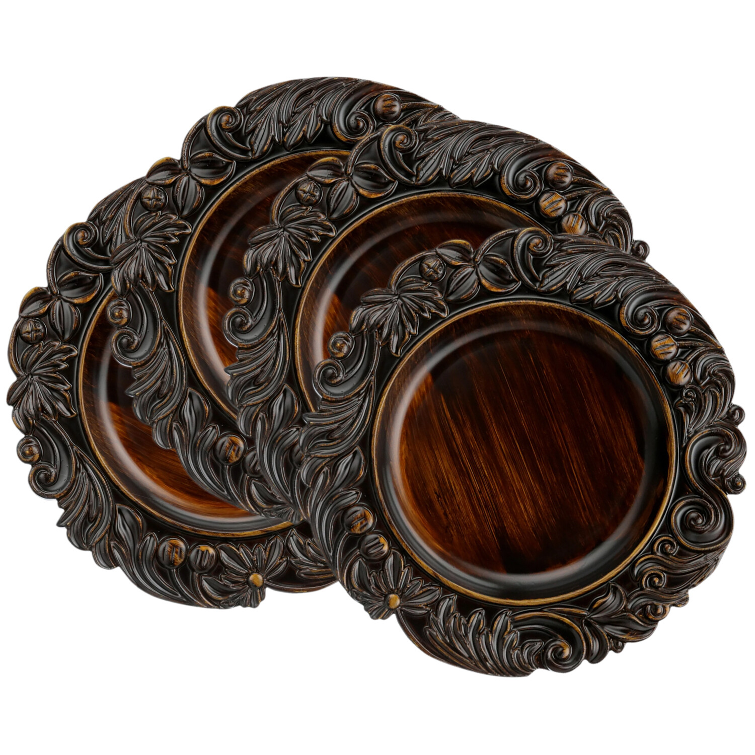 Brown Embossed Charger Plates Set Of 4 14"D. A high-quality and practical piece that combines everyday function with refined style.