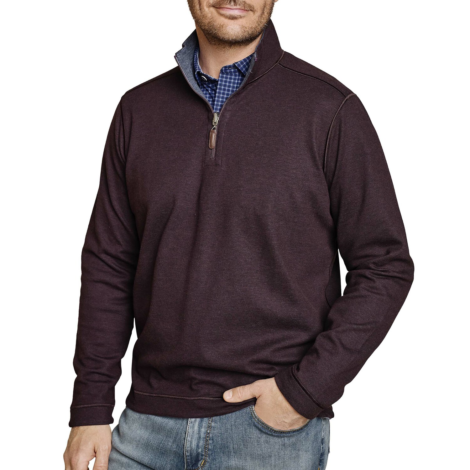 Reversible Heather Knit Pullover offers two looks in one, crafted from a soft cotton-blend knit that reverses to a different color. Designed with a quarter zip placket and leather-look pull, it’s finished with tonal cover-stitch details and subtle logo embroidery at the back neck.