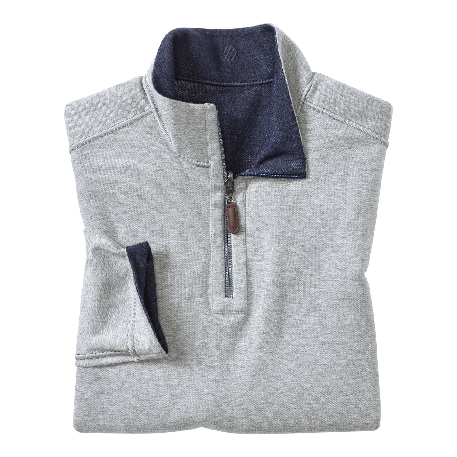 — Quarter Zip Placket with Logo Leather-Look Pull