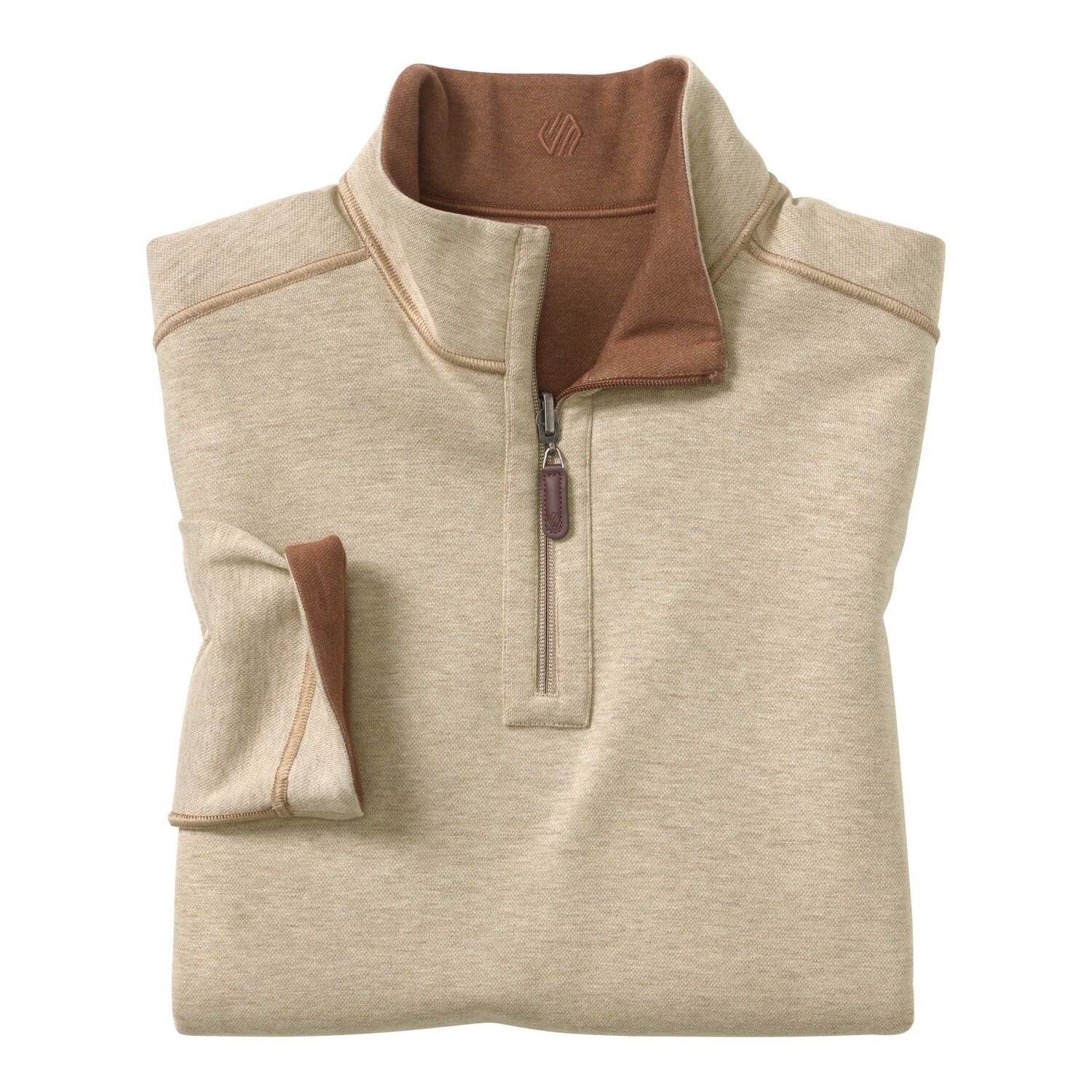 Reversible Heather Knit Pullover is crafted from a soft cotton-blend fabric that flips to a different color, giving you versatile styling options. Featuring a quarter zip placket with a logo leather-look pull, it’s detailed with tonal cover-stitching and finished with subtle logo embroidery at the back neck.