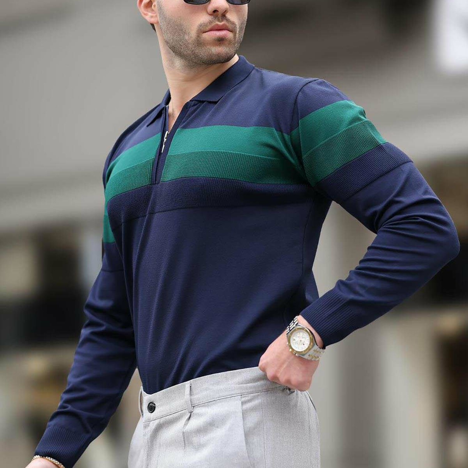 Chest Striped Quarter-Zip Polo Sweater // Navy