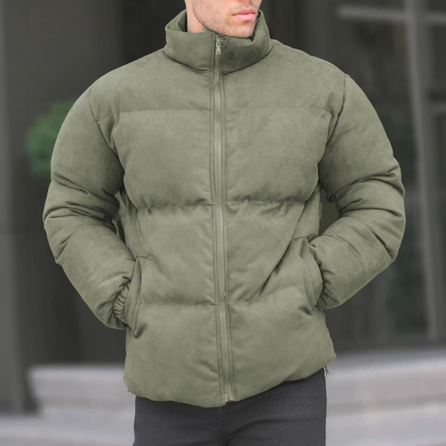Faux Suede Puffer Jacket // Khaki