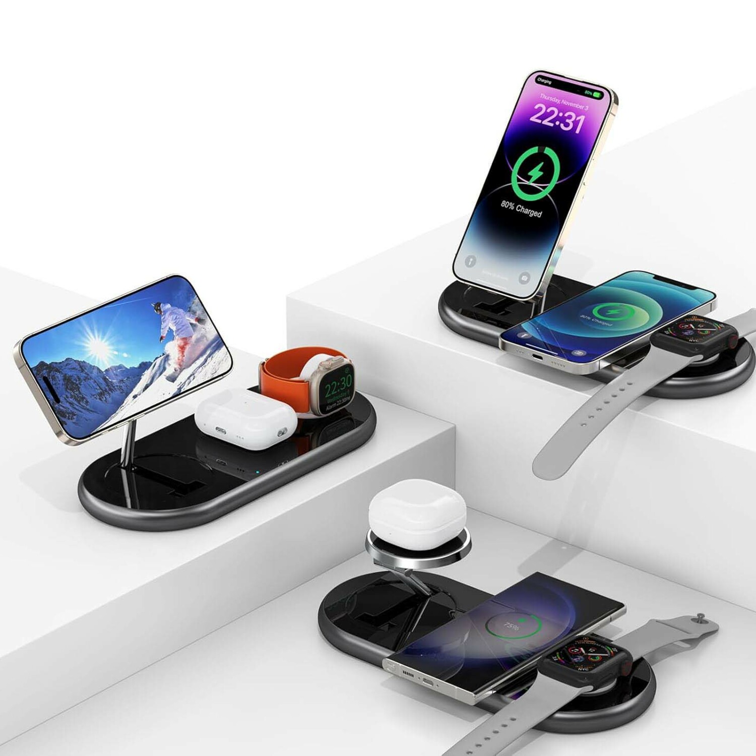 — Wireless Charging Station for Multiple Devices: The perfect charging station for your Apple ecosystem. Simultaneously powers iPhone 15/14/13/12 Series, Apple Watch Ultra/10/9/8/7/SE/6/5/4/3/2, and AirPods 2/3/Pro.