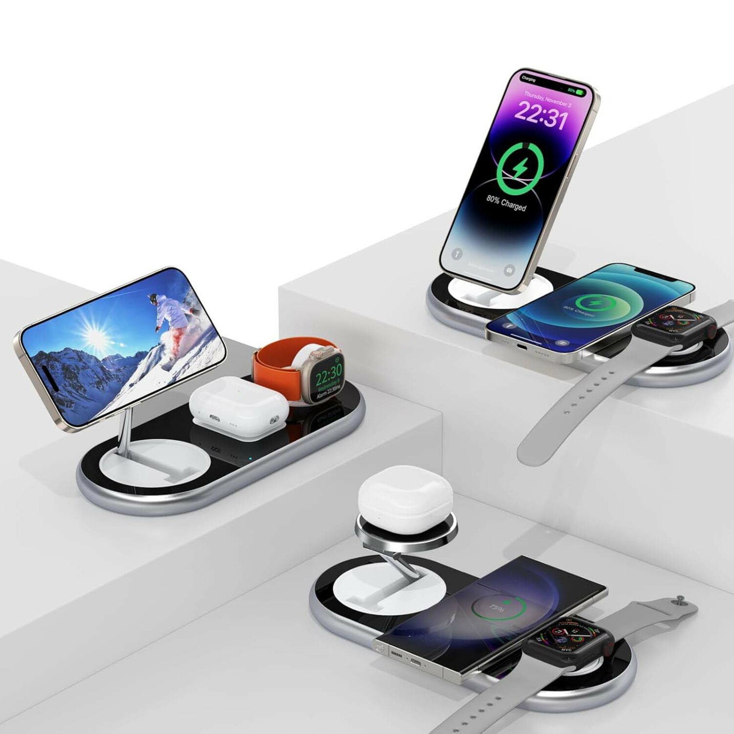 — Wireless Charging Station for Multiple Devices: The perfect charging station for your Apple ecosystem. Simultaneously powers iPhone 15/14/13/12 Series, Apple Watch Ultra/10/9/8/7/SE/6/5/4/3/2, and AirPods 2/3/Pro.