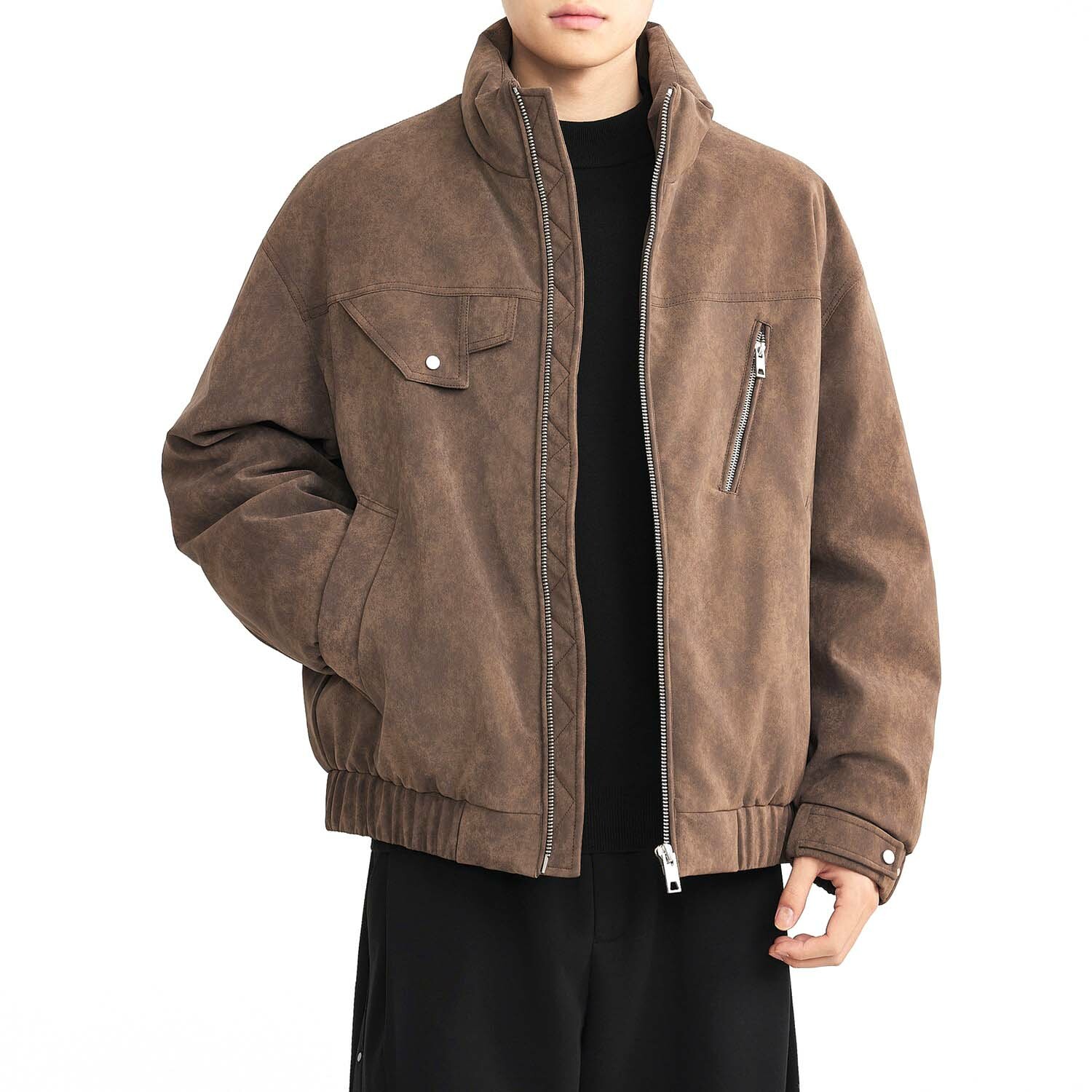 Zip-Up High Neck w/ Front Pockets Jacket // Brown