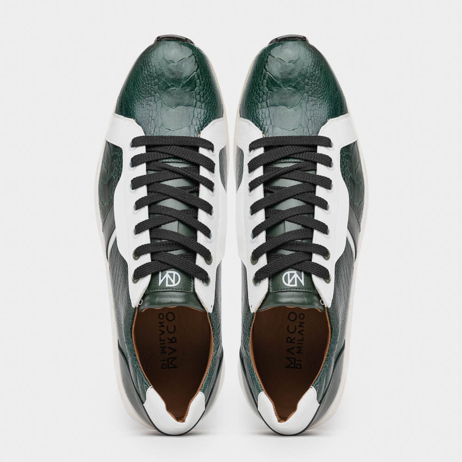 Lyon // Ostrich Leg Leather Sneakers // Green + White