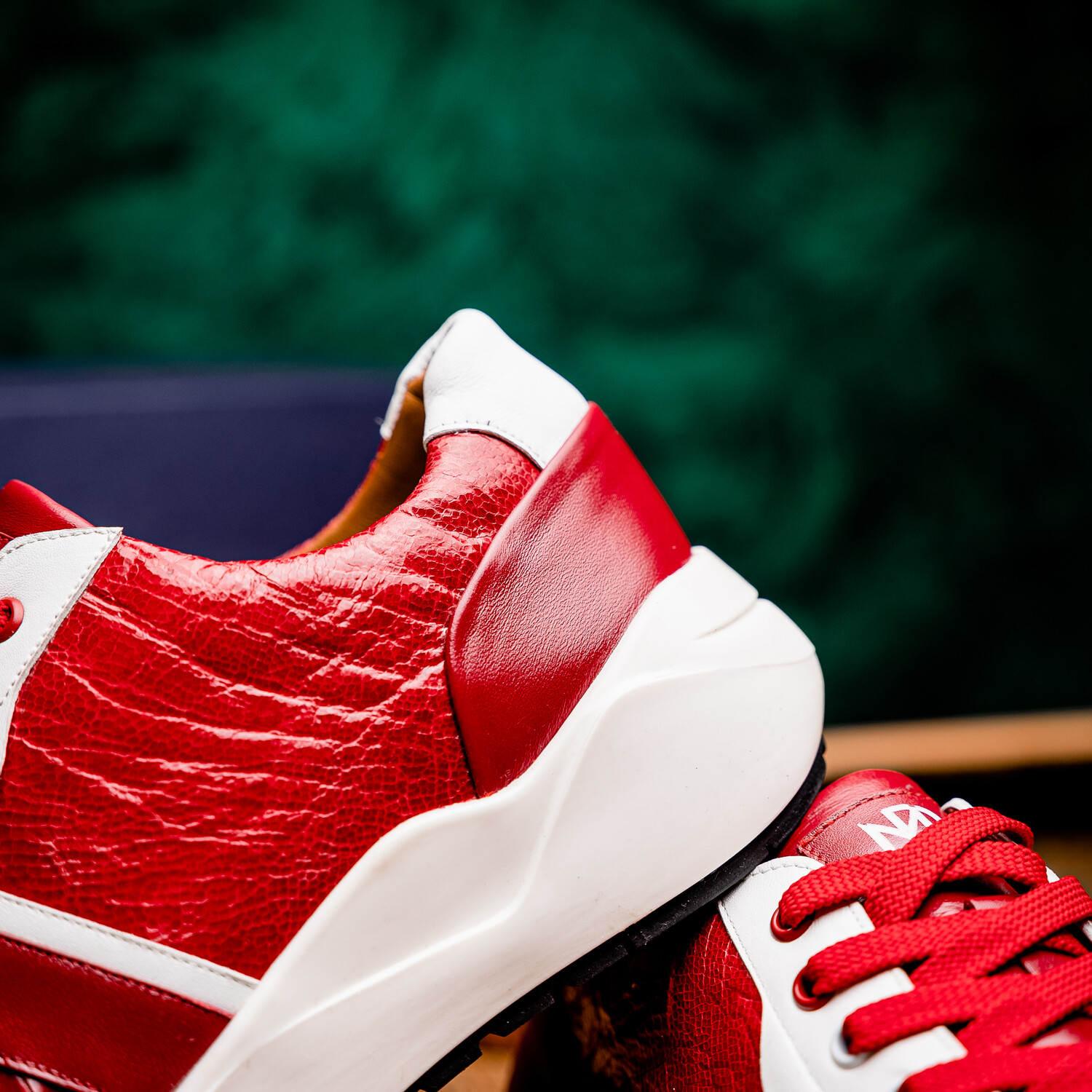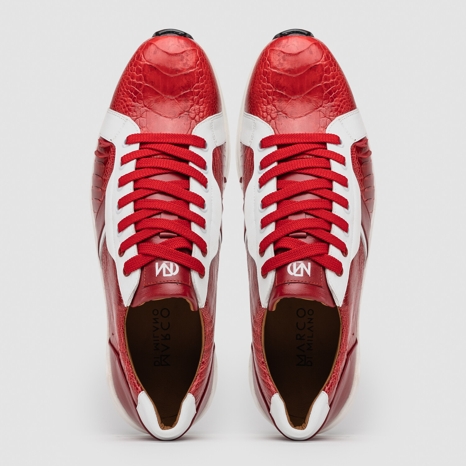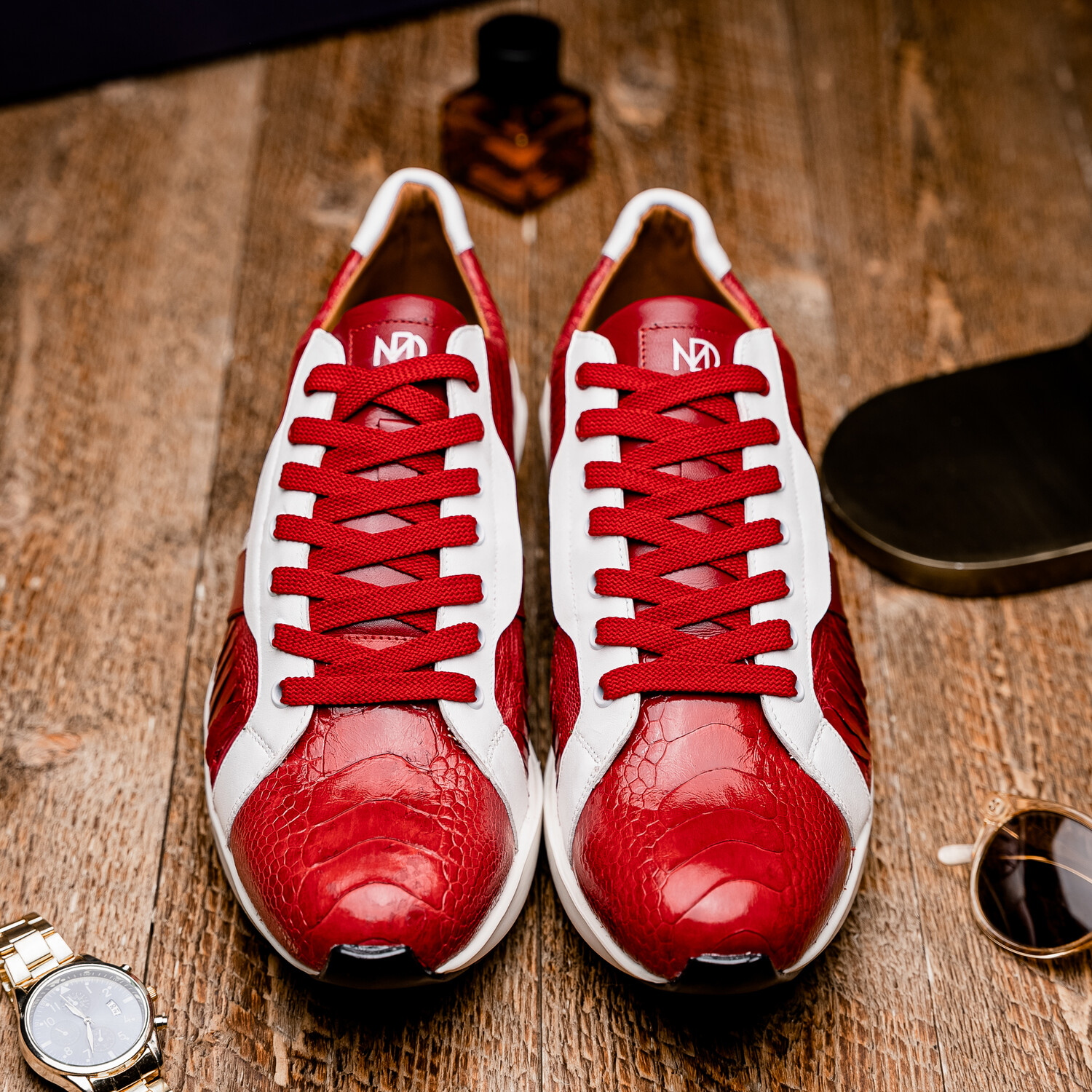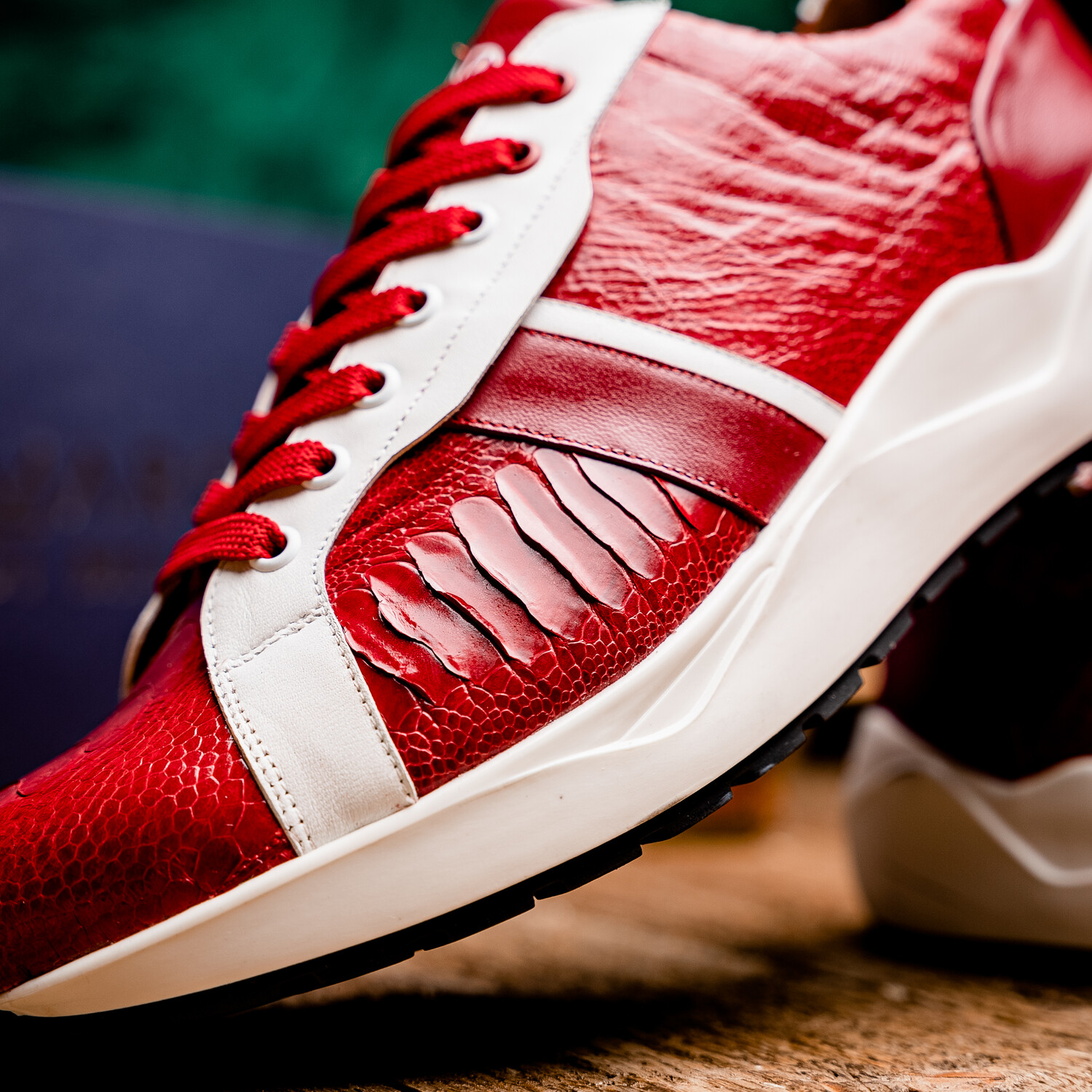 Lyon // Ostrich Leg Leather Sneakers // Red + White