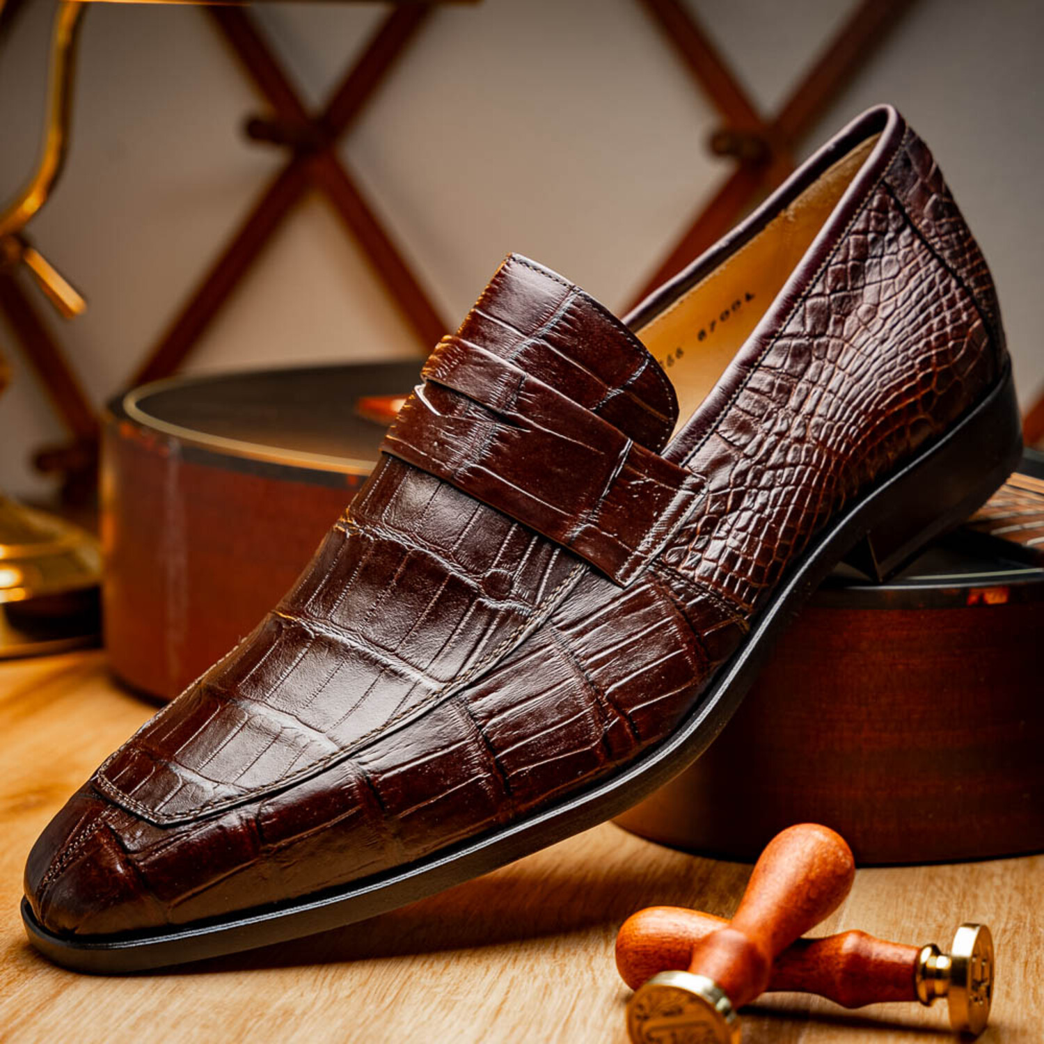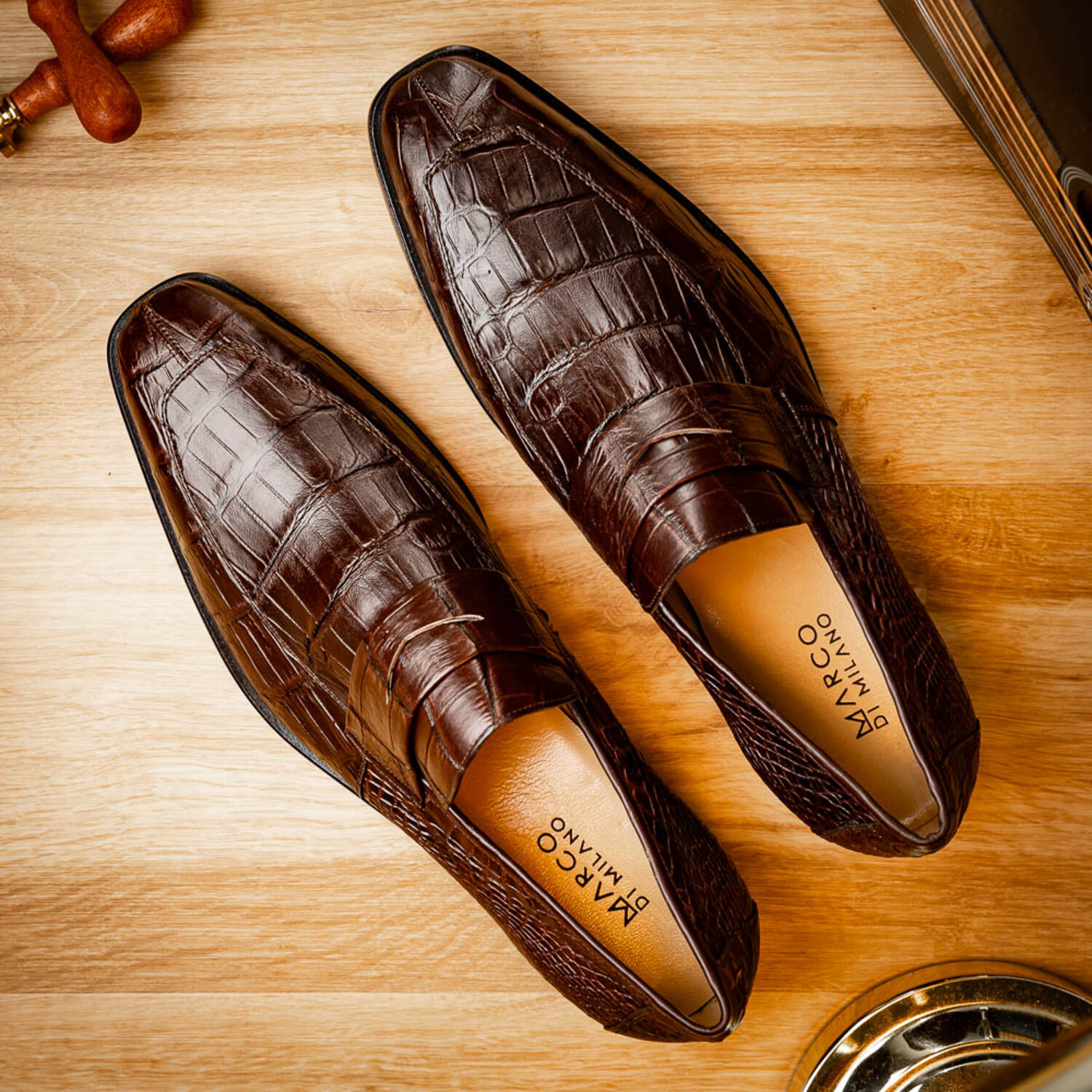 The MATTEO is a bold reinterpretation of the timeless loafer, handcrafted in genuine alligator leather for elevated versatility. Whether dressed up or worn casually, with or without socks, this elegant slip-on delivers comfort and luxury in every step. The polished finish enhances the depth of the scales, while the cushioned insole and leather outsole offer lasting wear for both formal and relaxed settings.