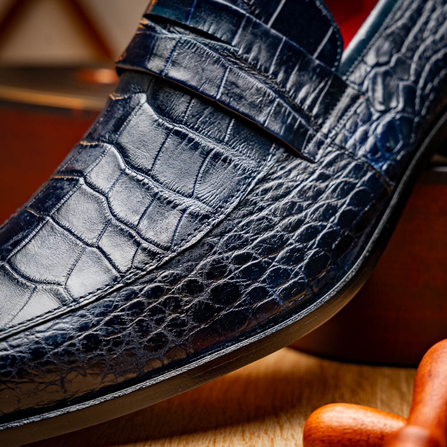 The MATTEO is a bold reinterpretation of the timeless loafer, handcrafted in genuine alligator leather for elevated versatility. Whether dressed up or worn casually, with or without socks, this elegant slip-on delivers comfort and luxury in every step. The polished finish enhances the depth of the scales, while the cushioned insole and leather outsole offer lasting wear for both formal and relaxed settings.