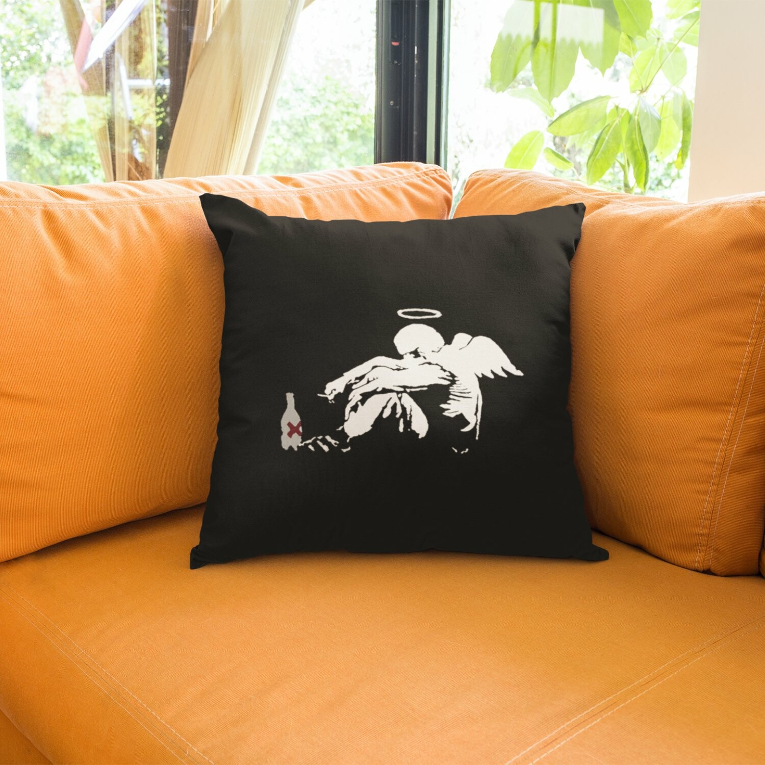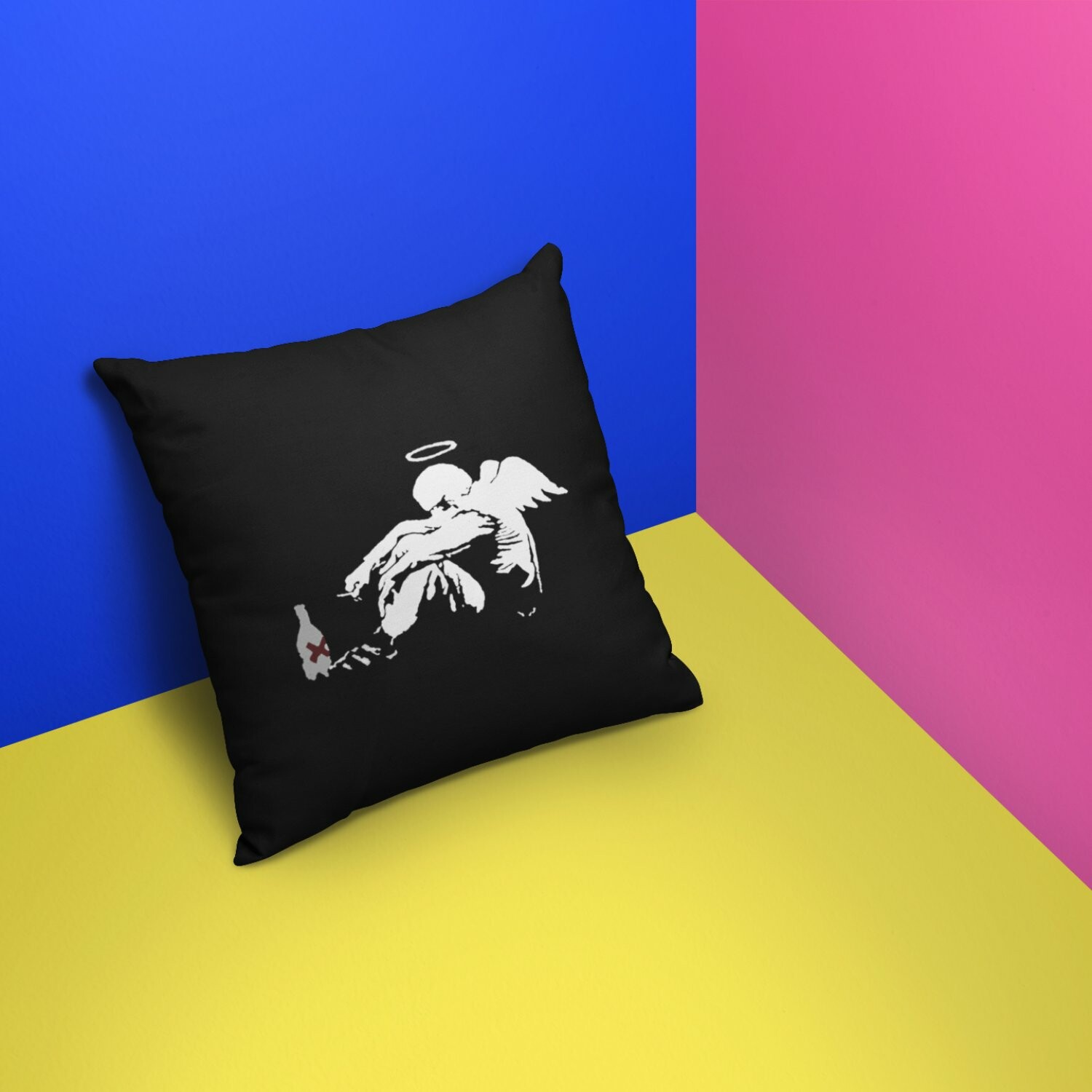 Banksy Inspired Drunken Angel Double Sided Print Pillow - Stuffed