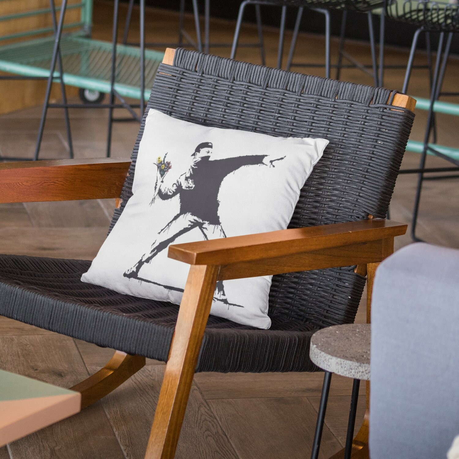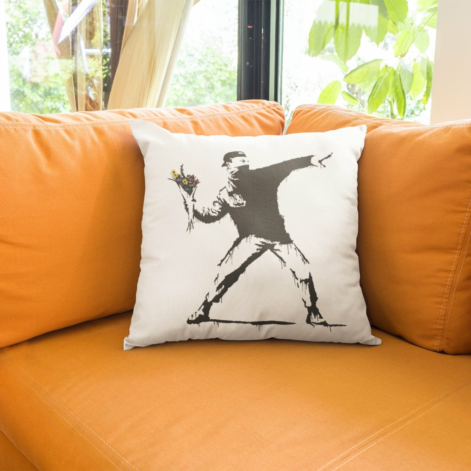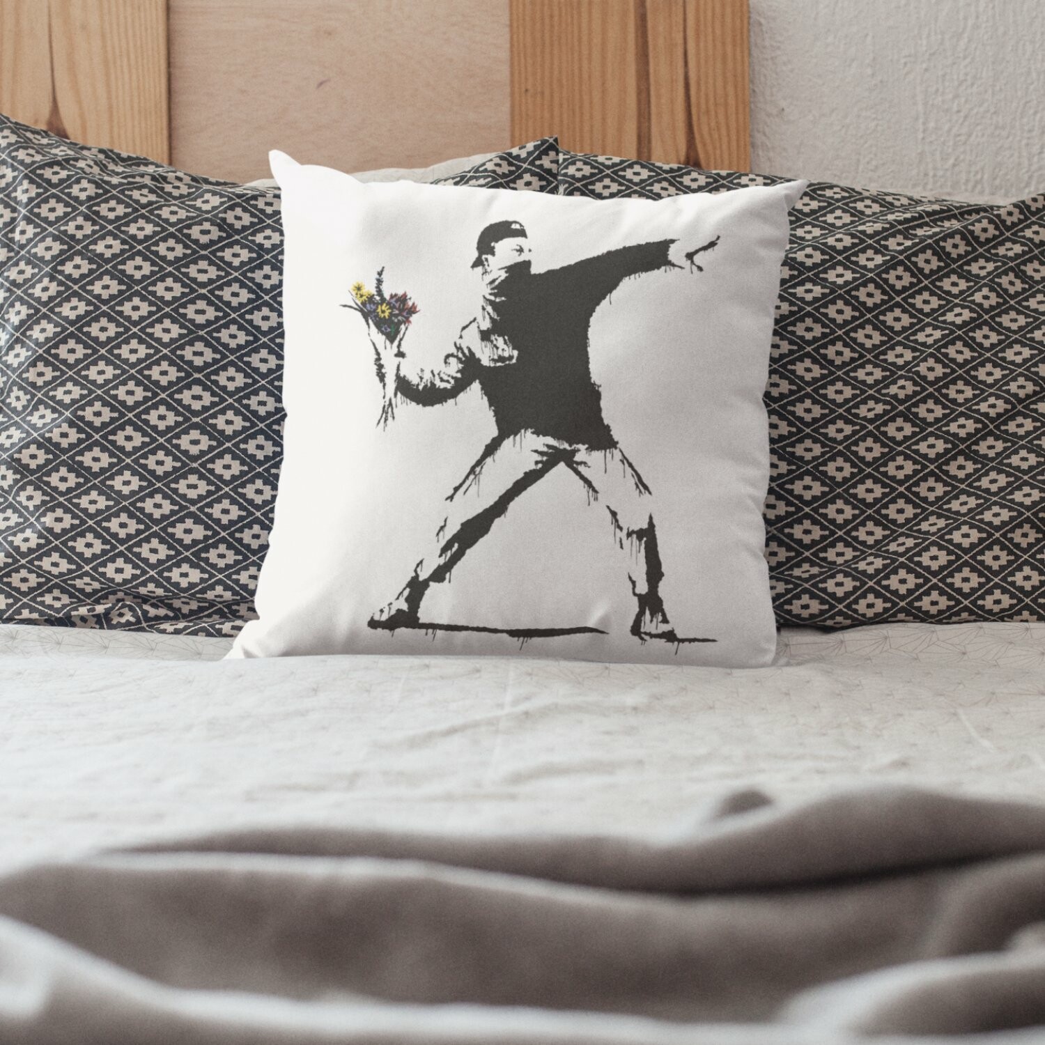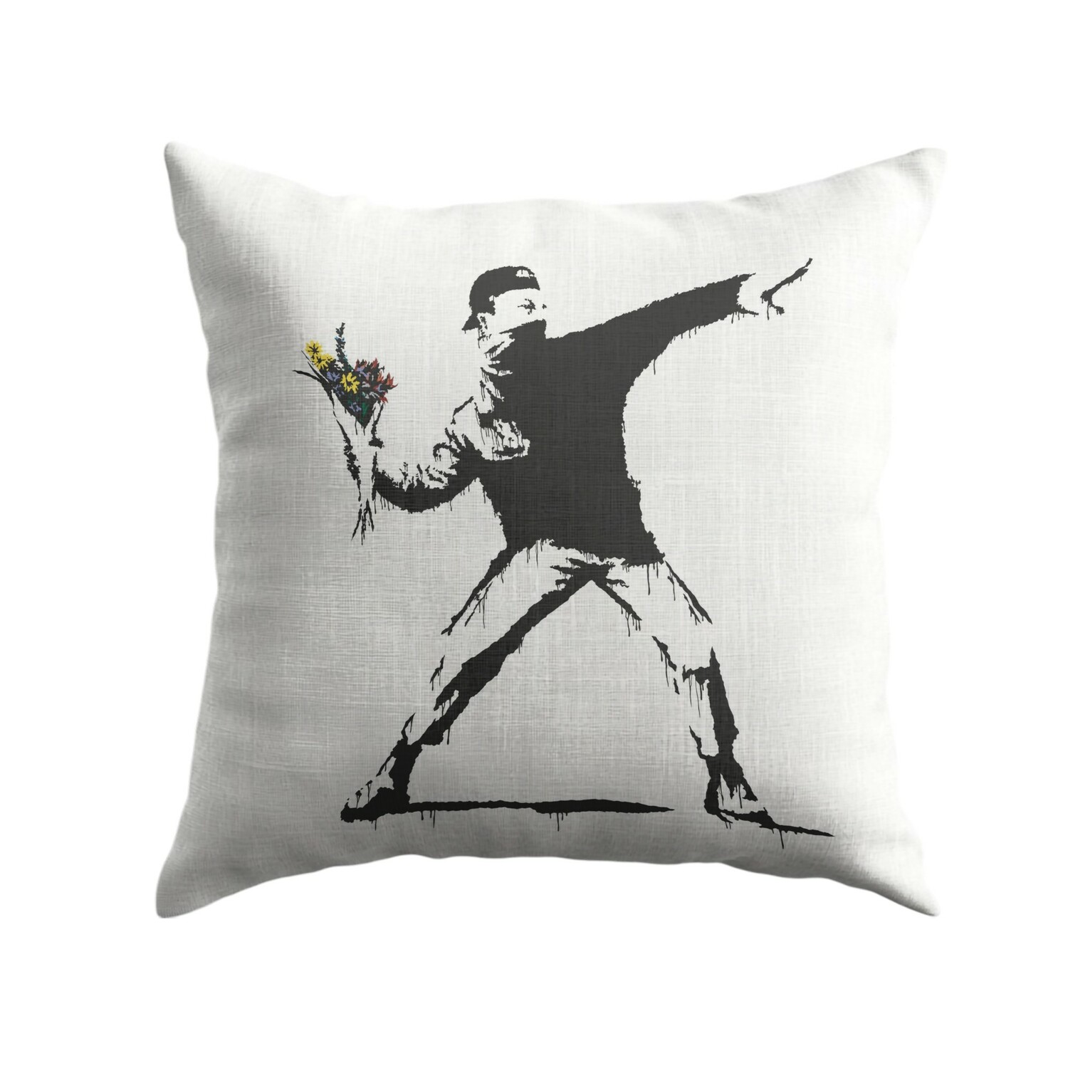 Banksy Inspired Flower Thrower Double Sided Print Pillow - Stuffed
