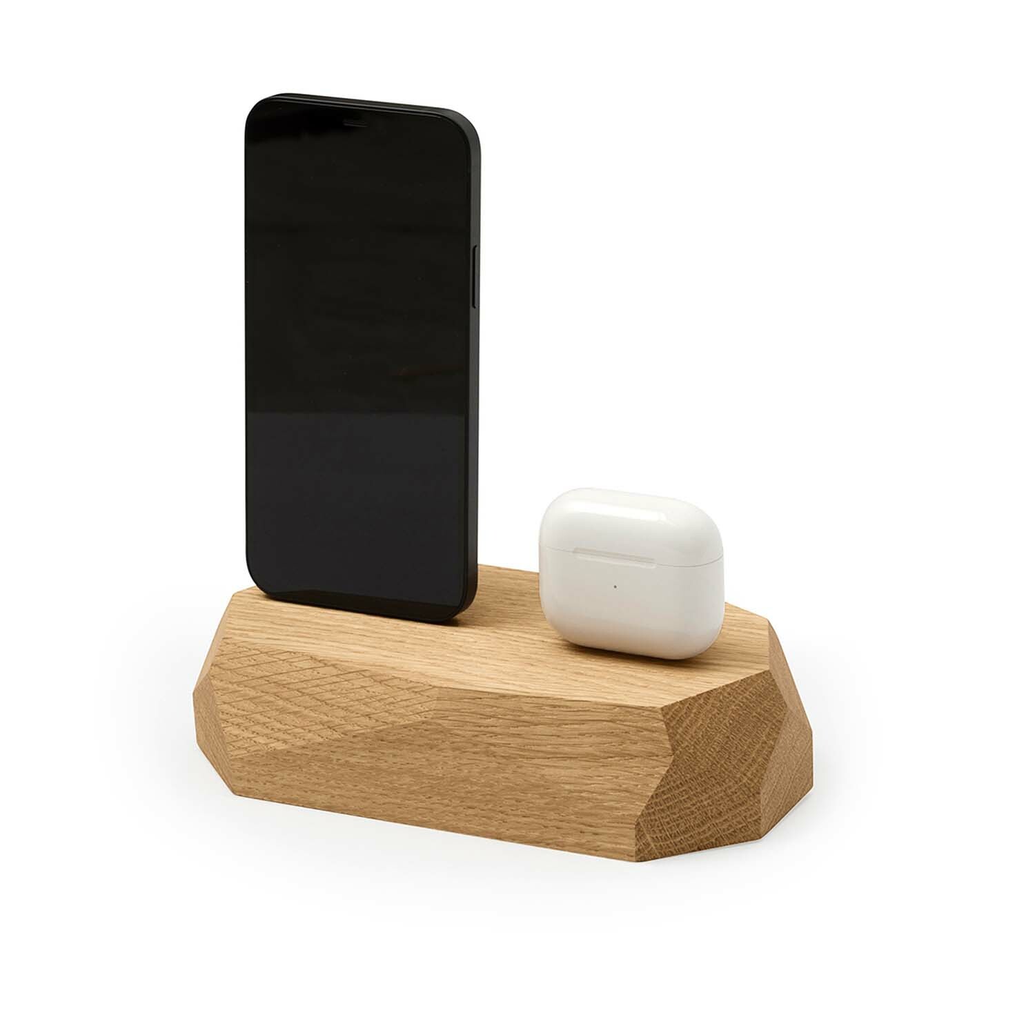 The Dual Dock Station combines form and function with Oakywood’s precision wood shaping. The smooth, wax-oiled finish highlights natural grain patterns, giving this geometric block a refined, lightweight look.