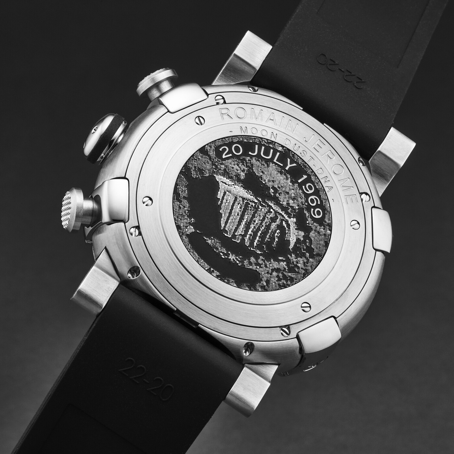 The Moon Dust-DNA Collection from RJ-Romain Jerome fuses high watchmaking with space history. Featuring real Moon dust in the dial, ISS spacesuit fibers in the strap, and design cues inspired by lunar exploration, each limited-edition timepiece is powered by a self-winding chronograph movement and finished with RJ’s signature “paws” and notched pushers. Only 1,969 pieces were made—honoring the year of the Apollo 11 landing.
