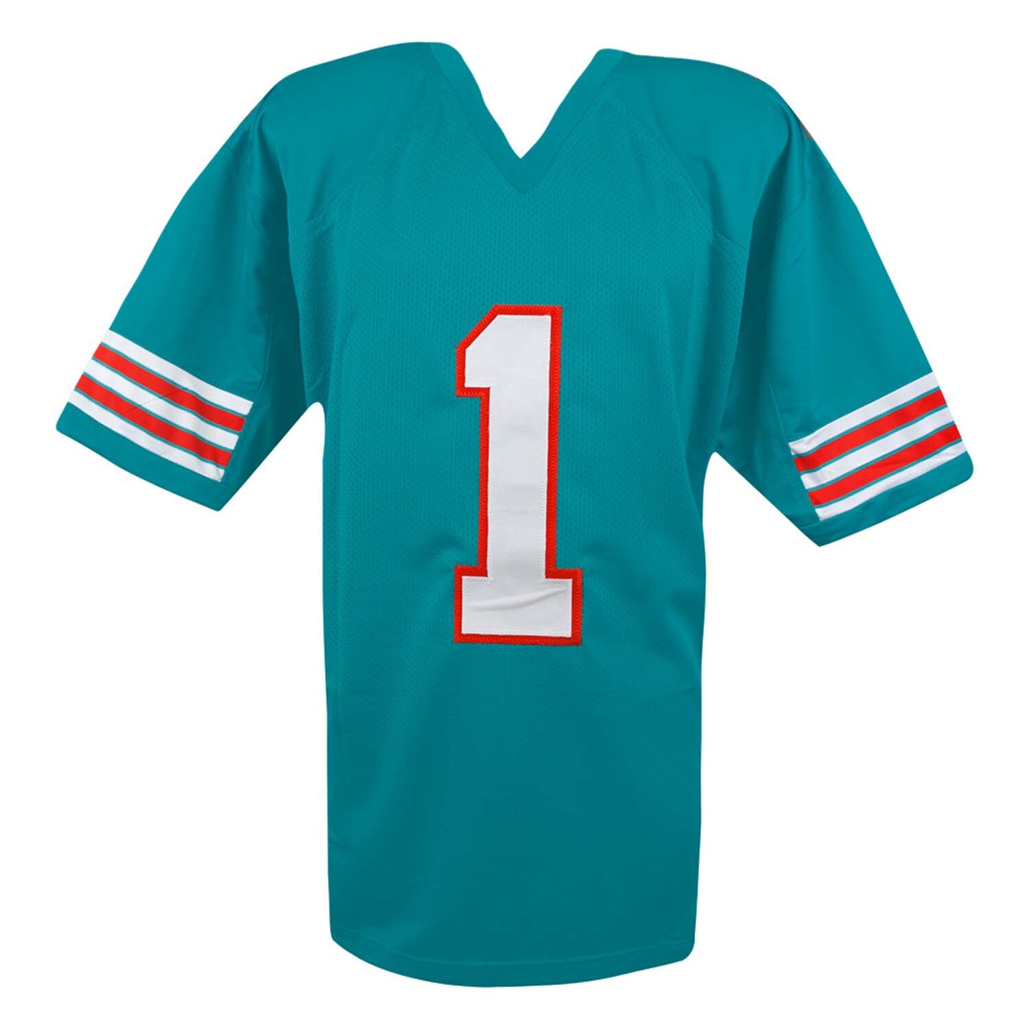 Tua Tagovailoa signed teal custom football jersey. Item comes with a Beckett Authentication tamper evident numbered sticker and matching Certificate of Authenticity which can be verified online. Jersey is size XL.