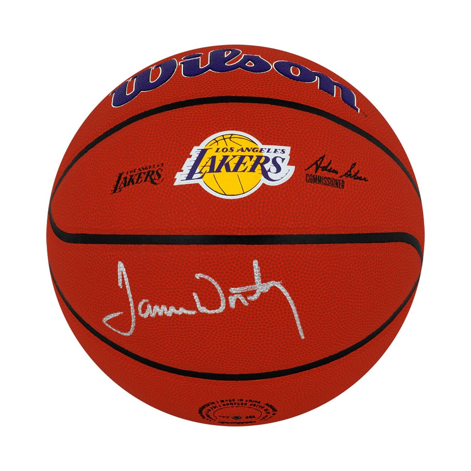 James Worthy signed Wilson Los Angeles Lakers logo NBA full size basketball. Item comes with a Schwartz Sports Memorabilia tamper-proof numbered hologram and Certificate of Authenticity which can be verified online.