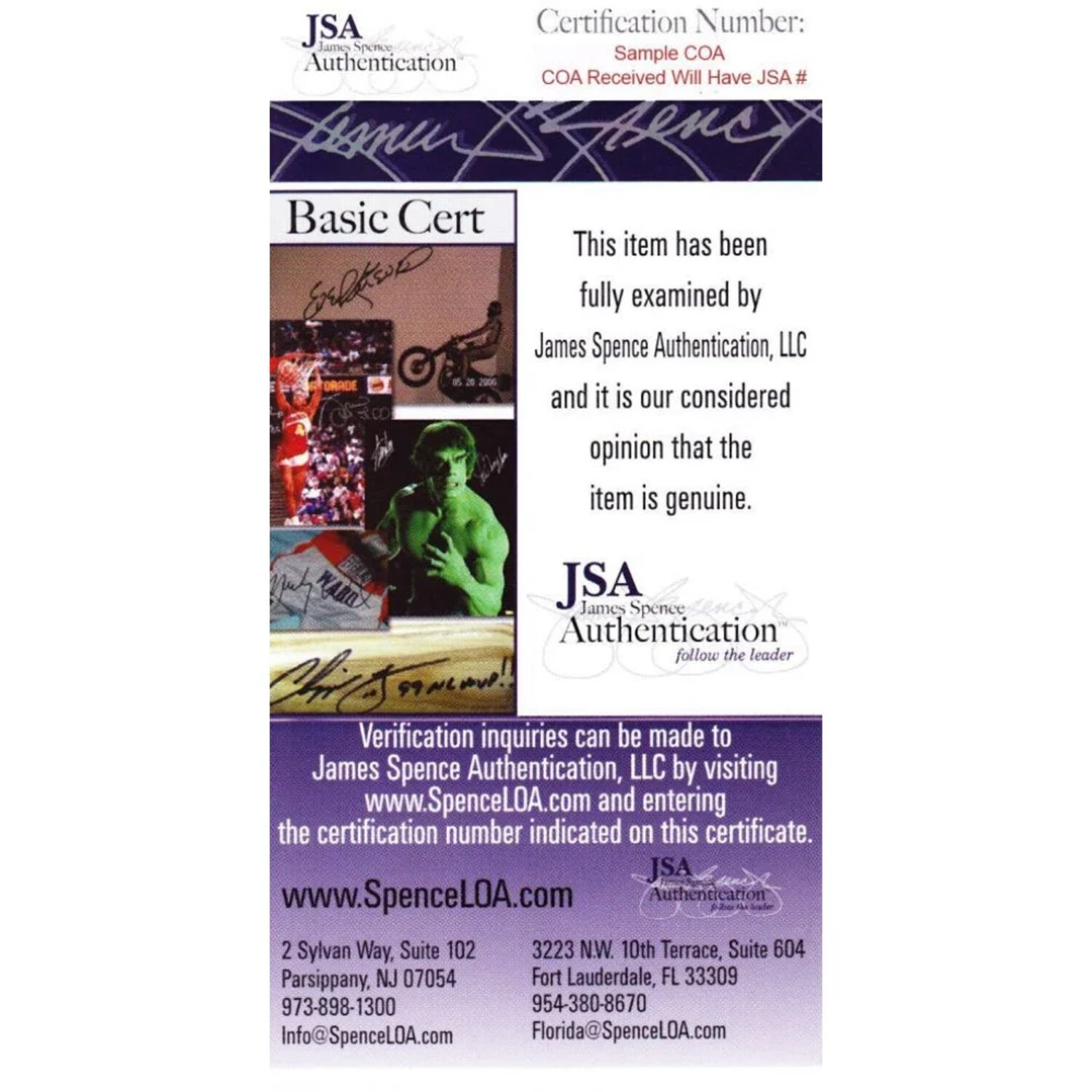 — Includes JSA Numbered Tamper-proof Authentication Sticker And Certificate Of Authenticity Card