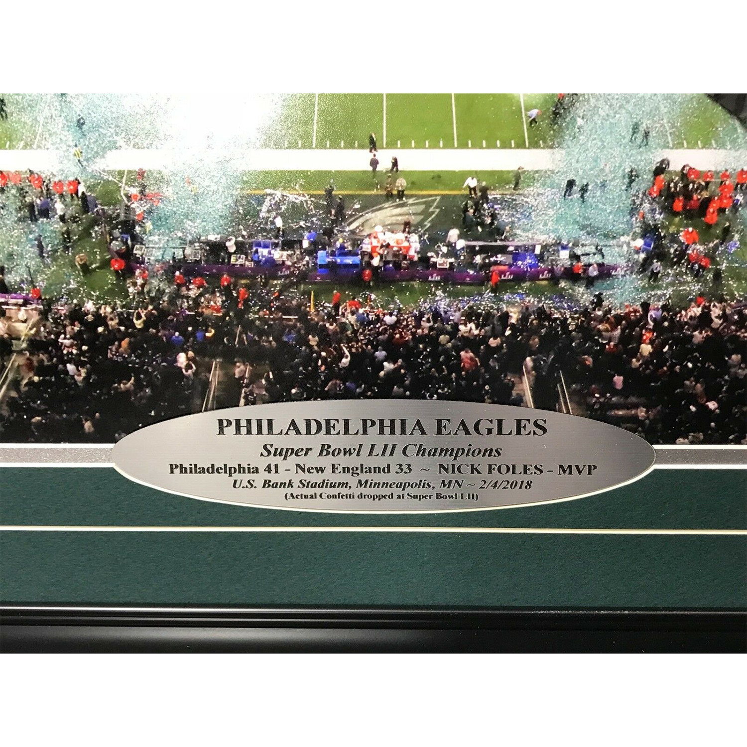 Commemorate the Eagles' first Super Bowl championship with this Philadelphia Eagles Super Bowl LII Champions Confetti Display featuring actual confetti pieces dropped during the celebration at Super Bowl 52 in Minneapolis!